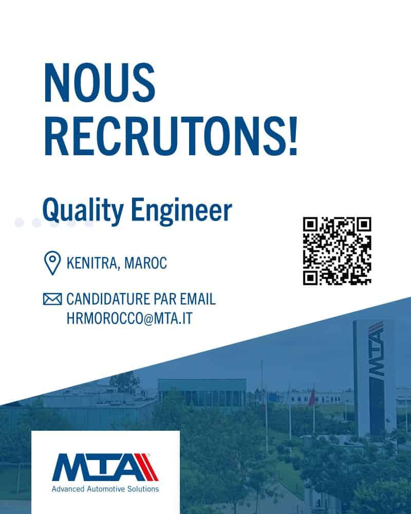 Intégrer MTA Morocco offre l'opportunité de travailler au sein d'un groupe international reconnu, avec un environnement technique structuré, des projets industriels exigeants et des fonctions clés dans les domaines de la qualité, de la logistique et de l'ingénierie manufacturing.