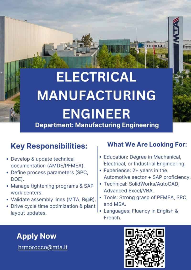Ingénieur Manufacturing Électrique – Kénitra