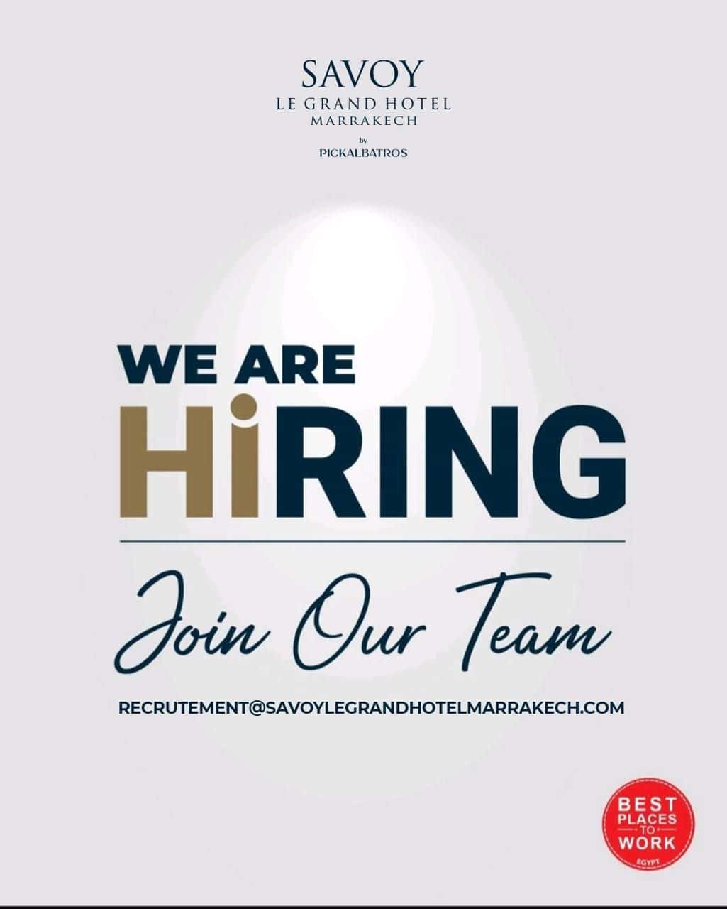 Savoy Le Grand Hôtel Marrakech recherche 5 professionnels en CDI pour renforcer ses équipes dans les domaines de l'accueil, de la restauration et de la gestion hôtelière. L'établissement, emblématique du luxe marocain, allie architecture élégante et service personnalisé dans un cadre de 444 unités, dont 70 suites.