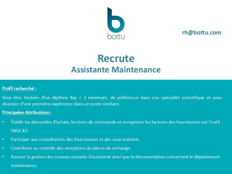 Les candidats doivent envoyer leur CV à rh@bottu.com, en précisant l'intitulé exact du poste visé dans l'objet.