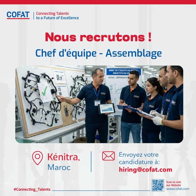 - Chef d'Équipe Assemblage: hiring-morooco@cofat.com