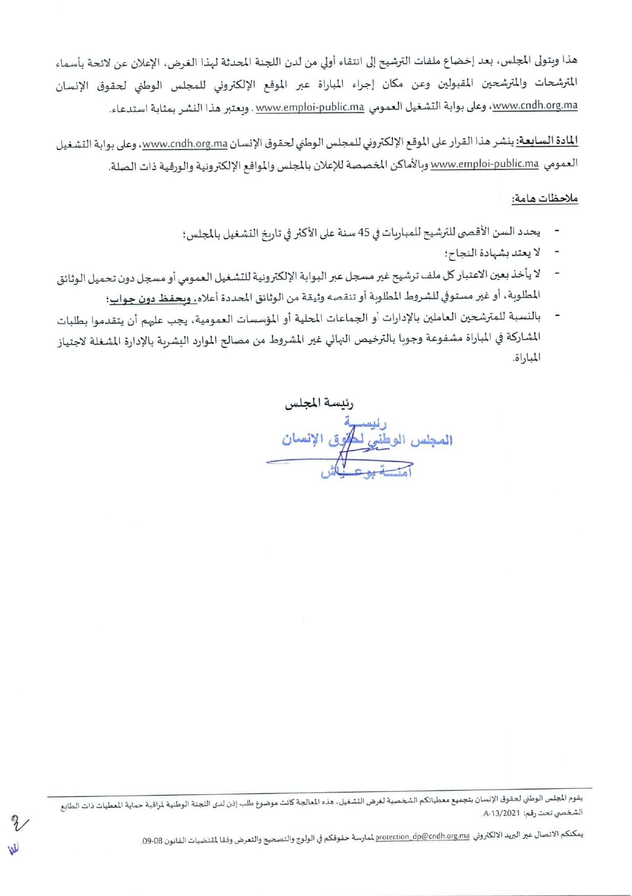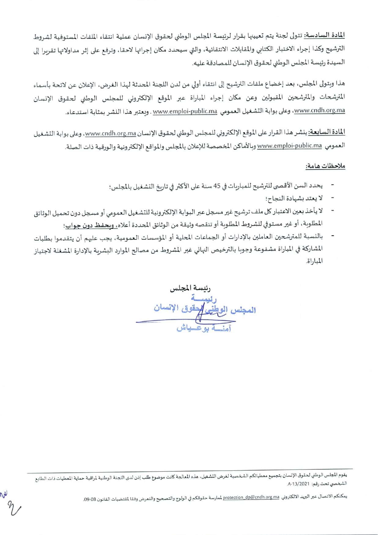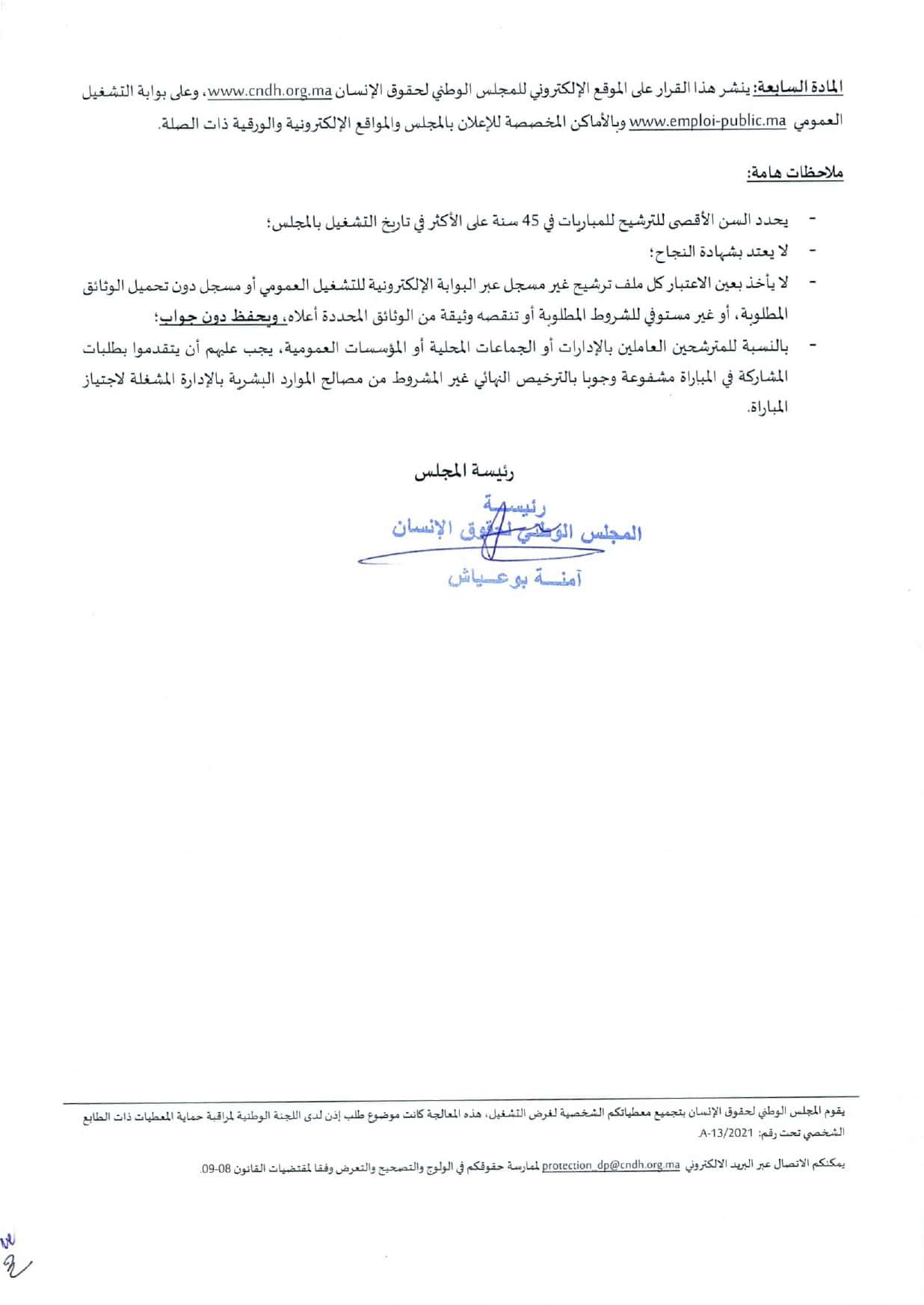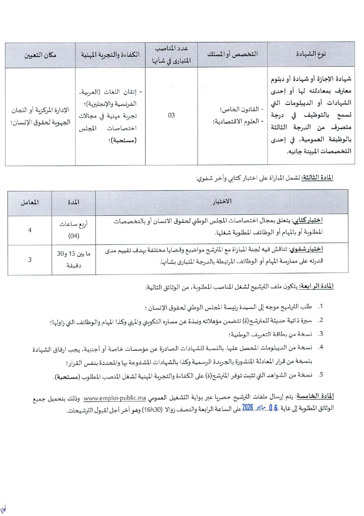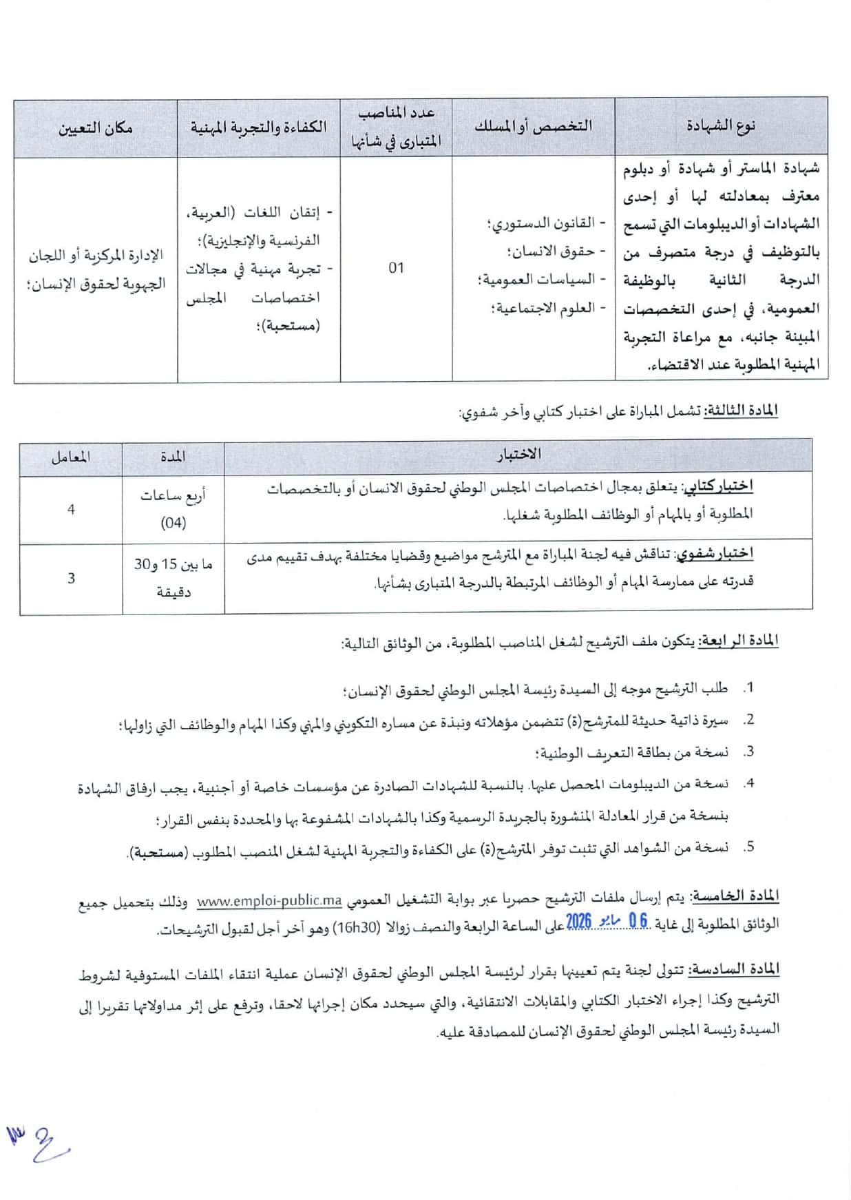 مباراة توظيف (6) مناصب بالمجلس الوطني لحقوق الإنسان، آخر أجل 6 ماي 2026