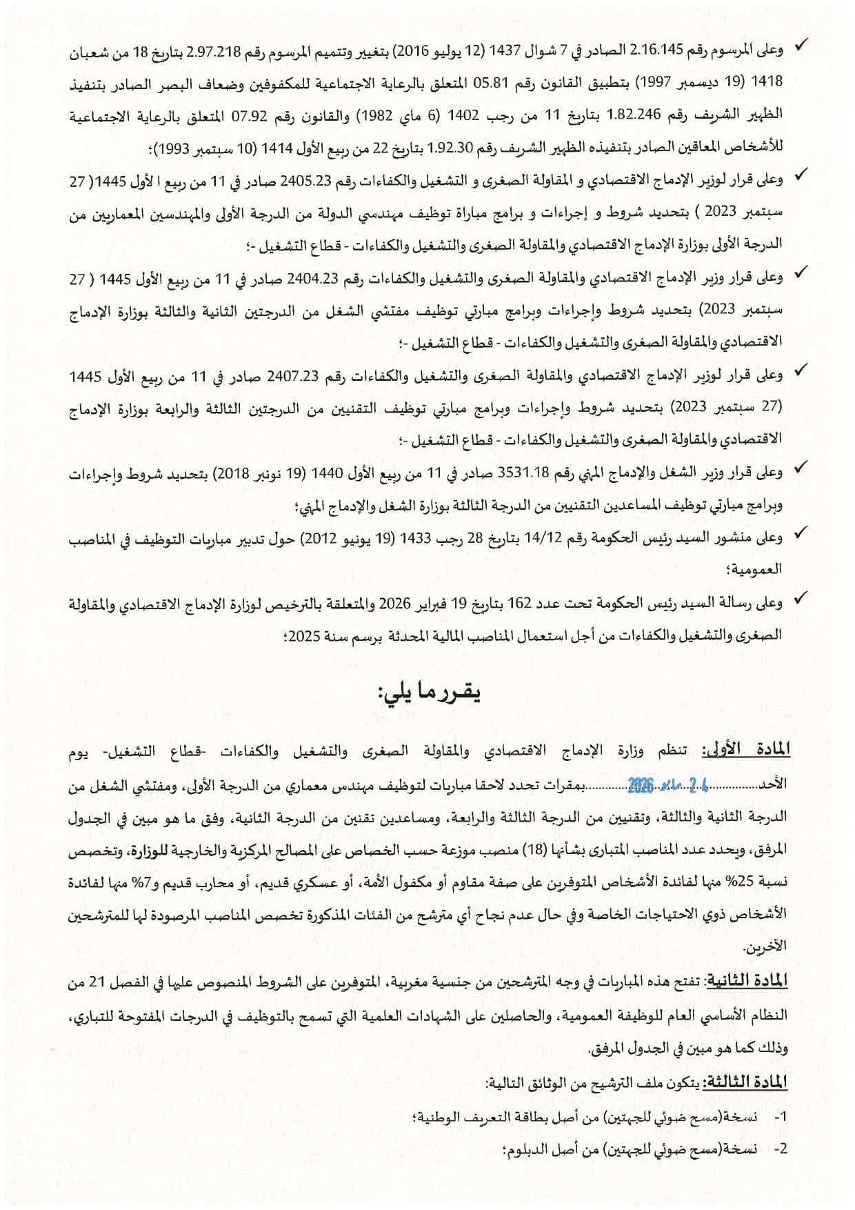 Concours du Ministère de l'Inclusion Économique 2026