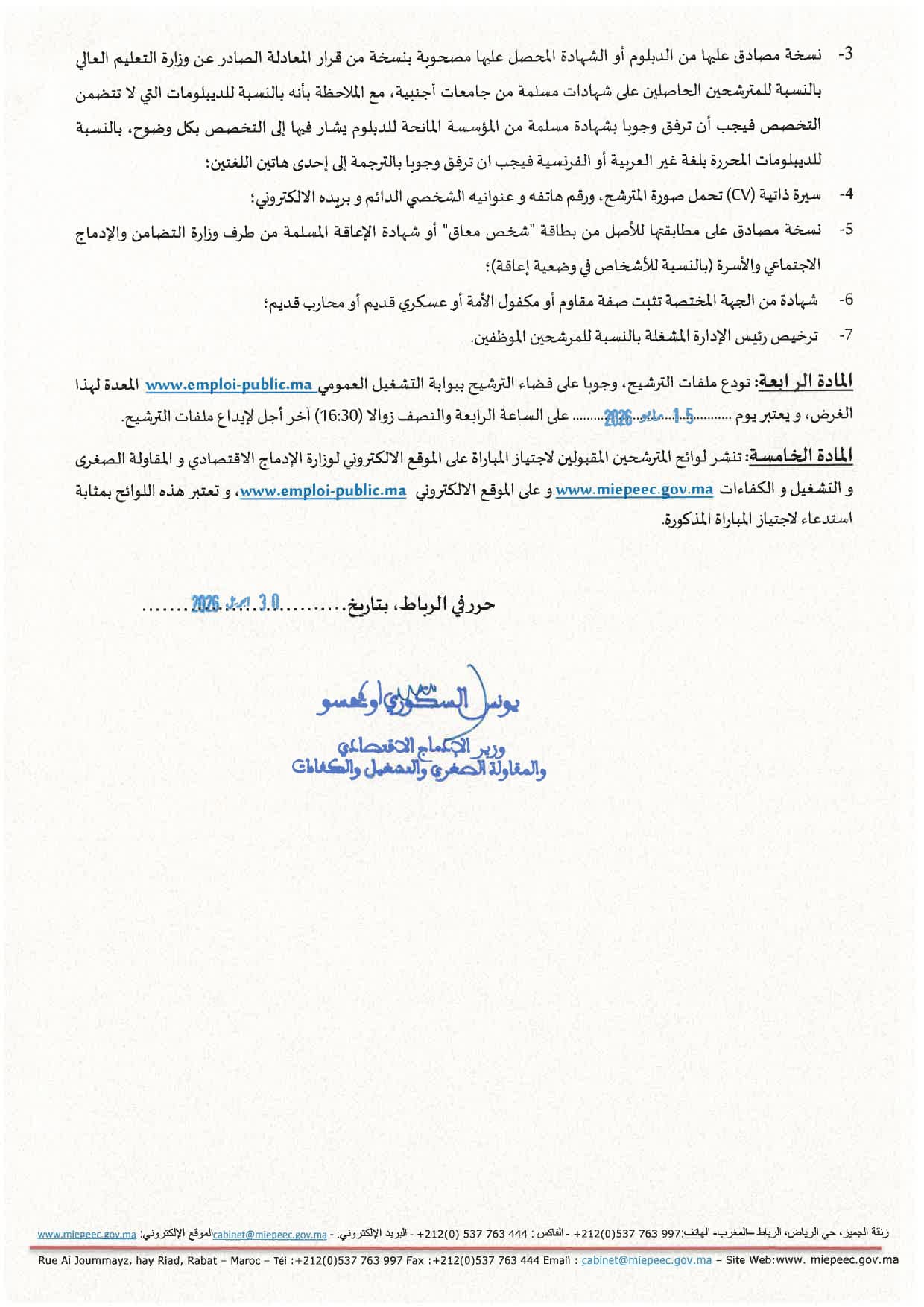 Date limite: 15 Mai 2026