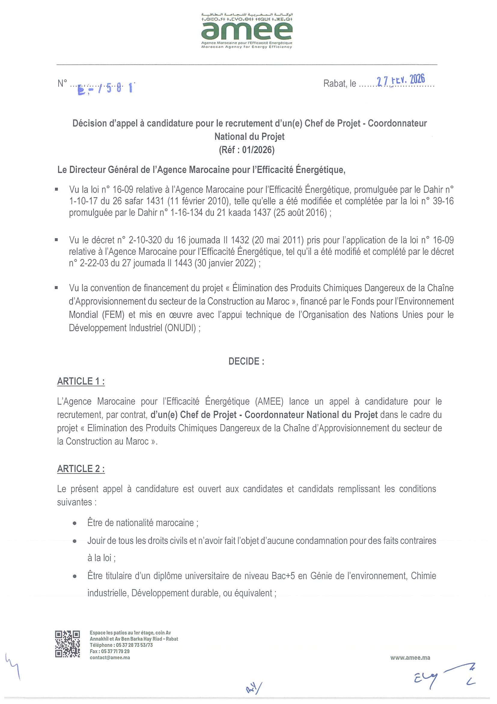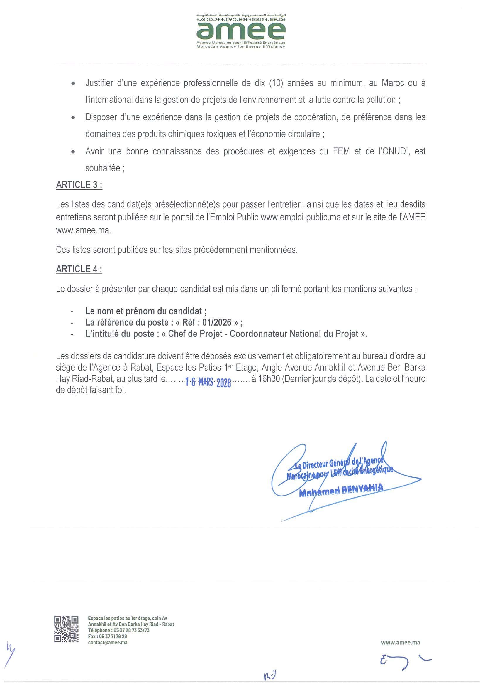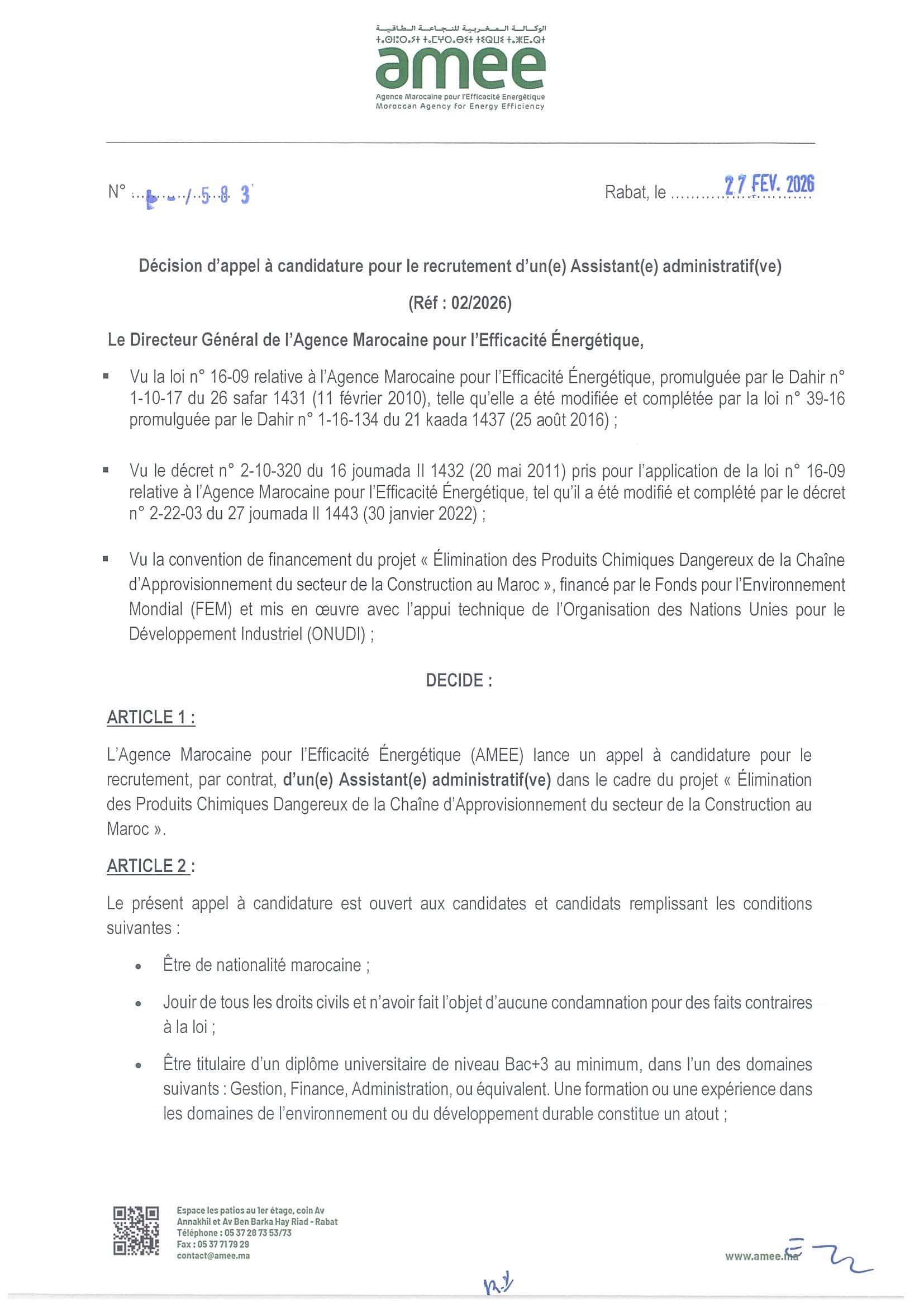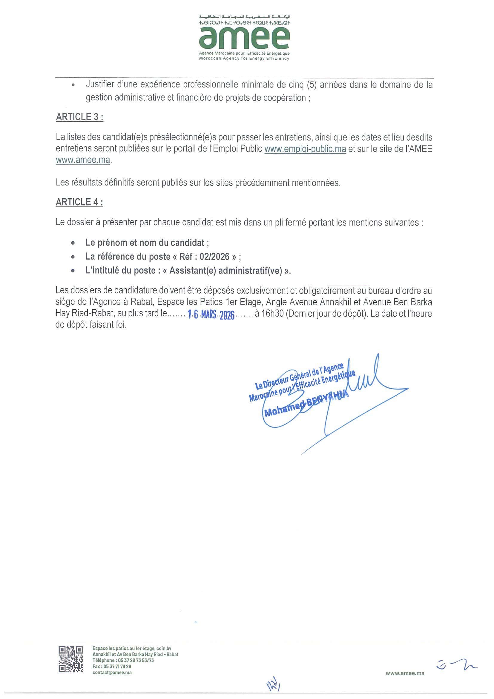 Concours de Recrutement AMEE 2026 (2 Postes)
