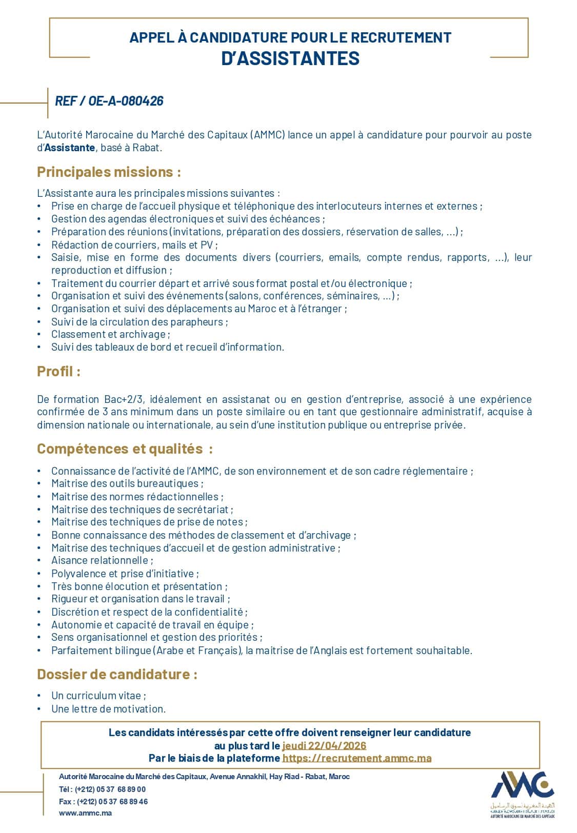 Concours de Recrutement AMMC 2026 (7 Postes)