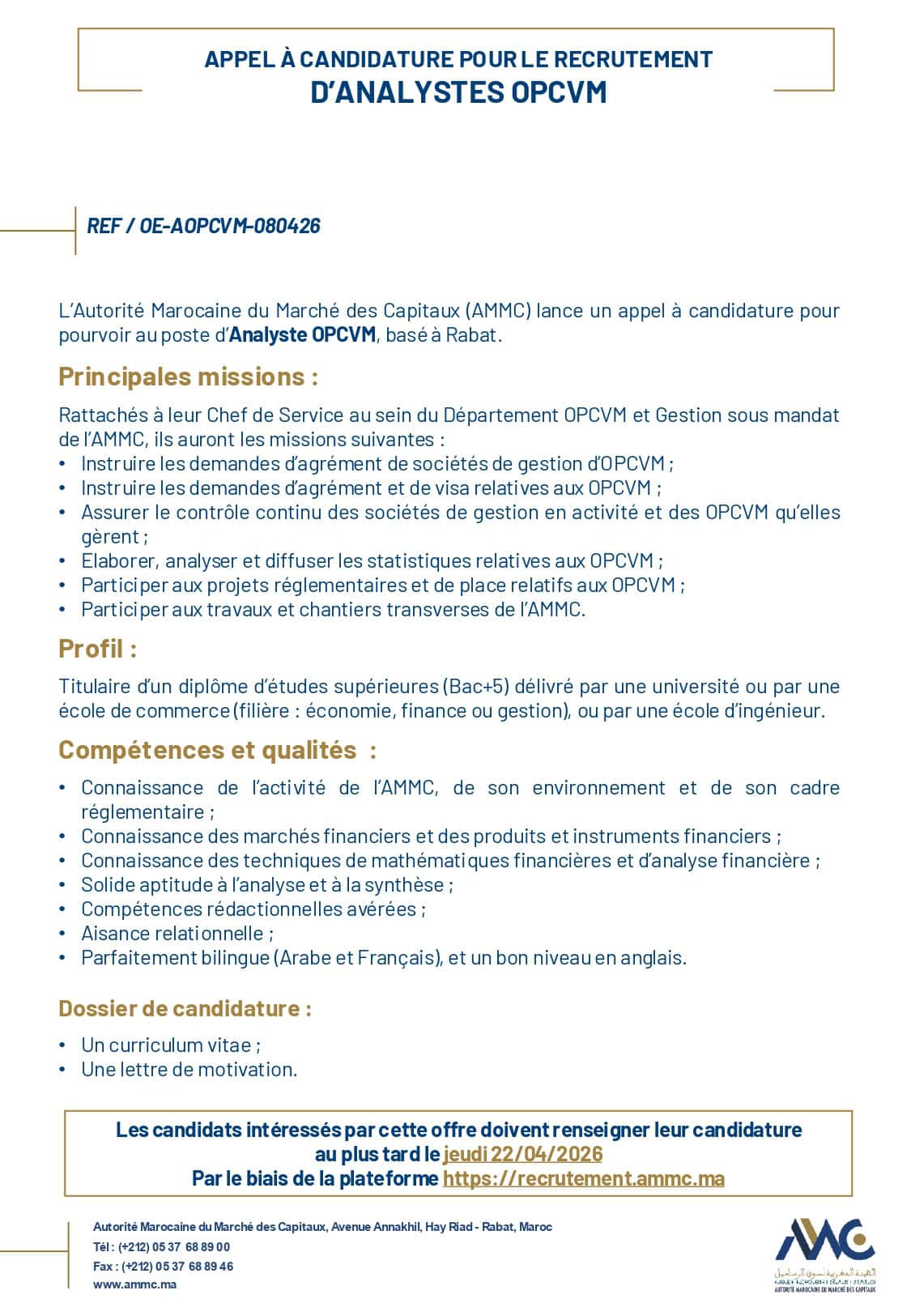 Télécharger le documentAvis de Concours (2) Analystes OPCVM