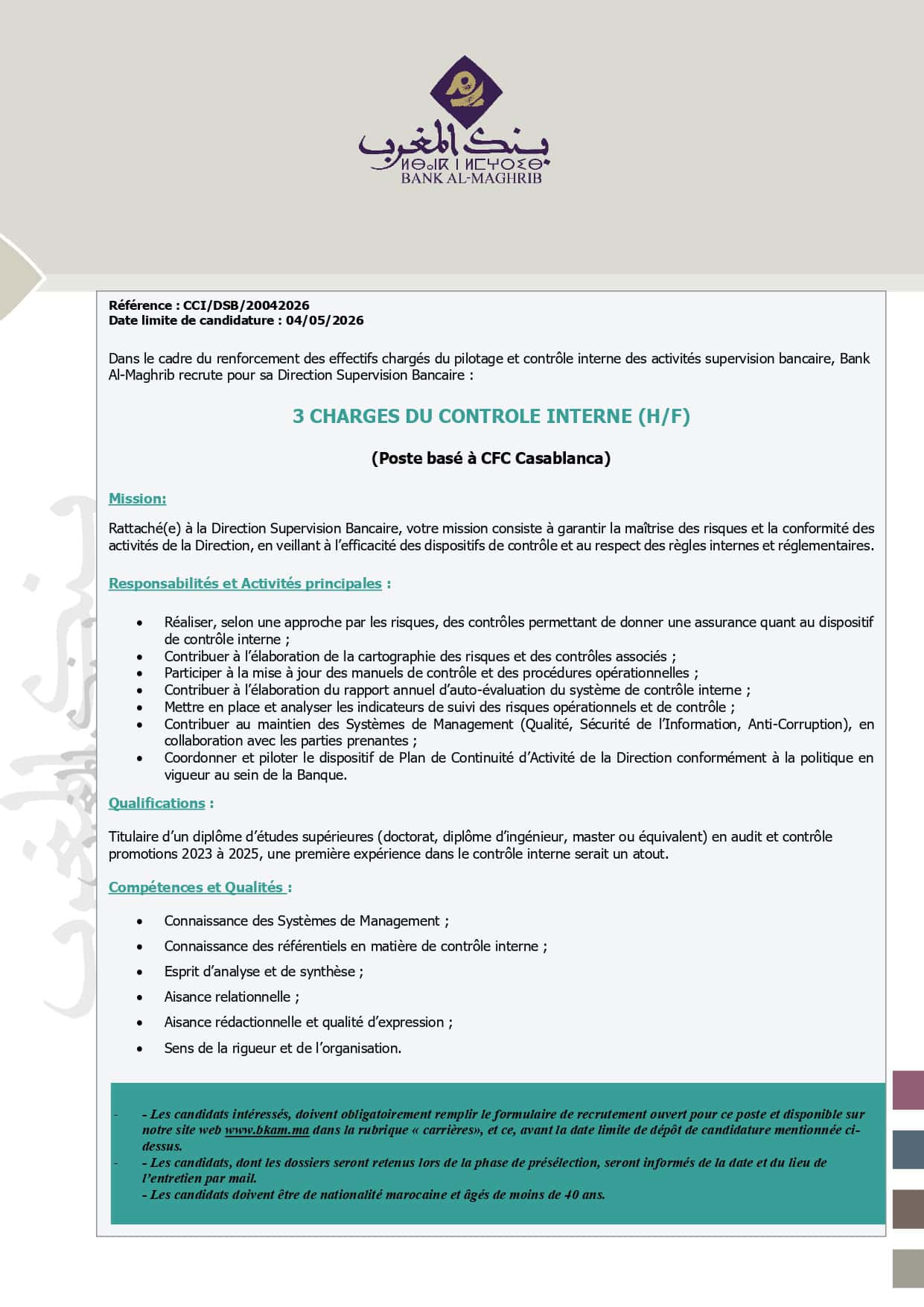 Concours de Recrutement Bank Al Maghrib 2026 (16 Postes)