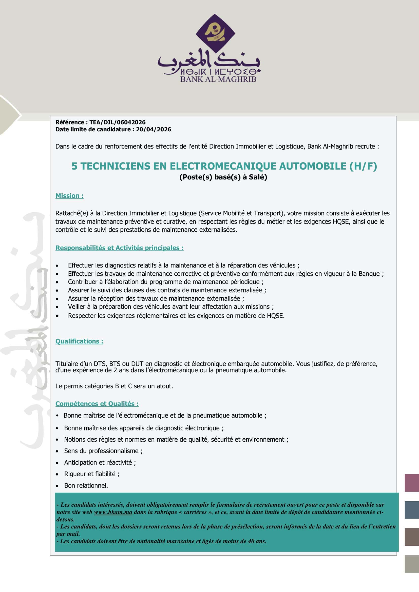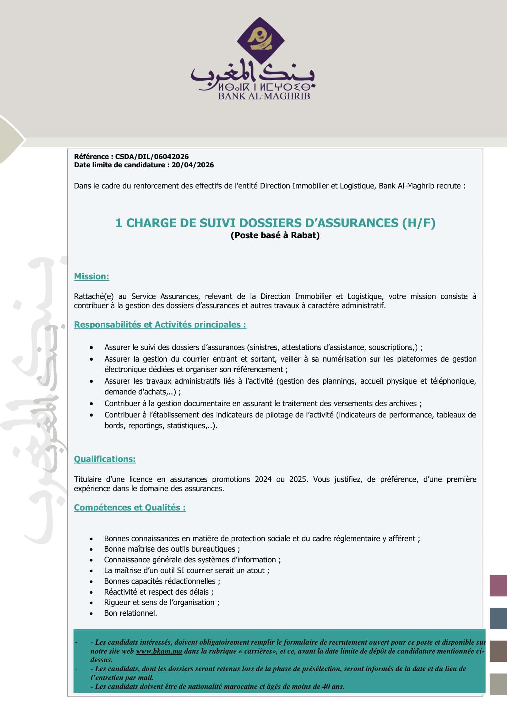 Concours de Recrutement Bank Al Maghrib 2026 (9 Postes)