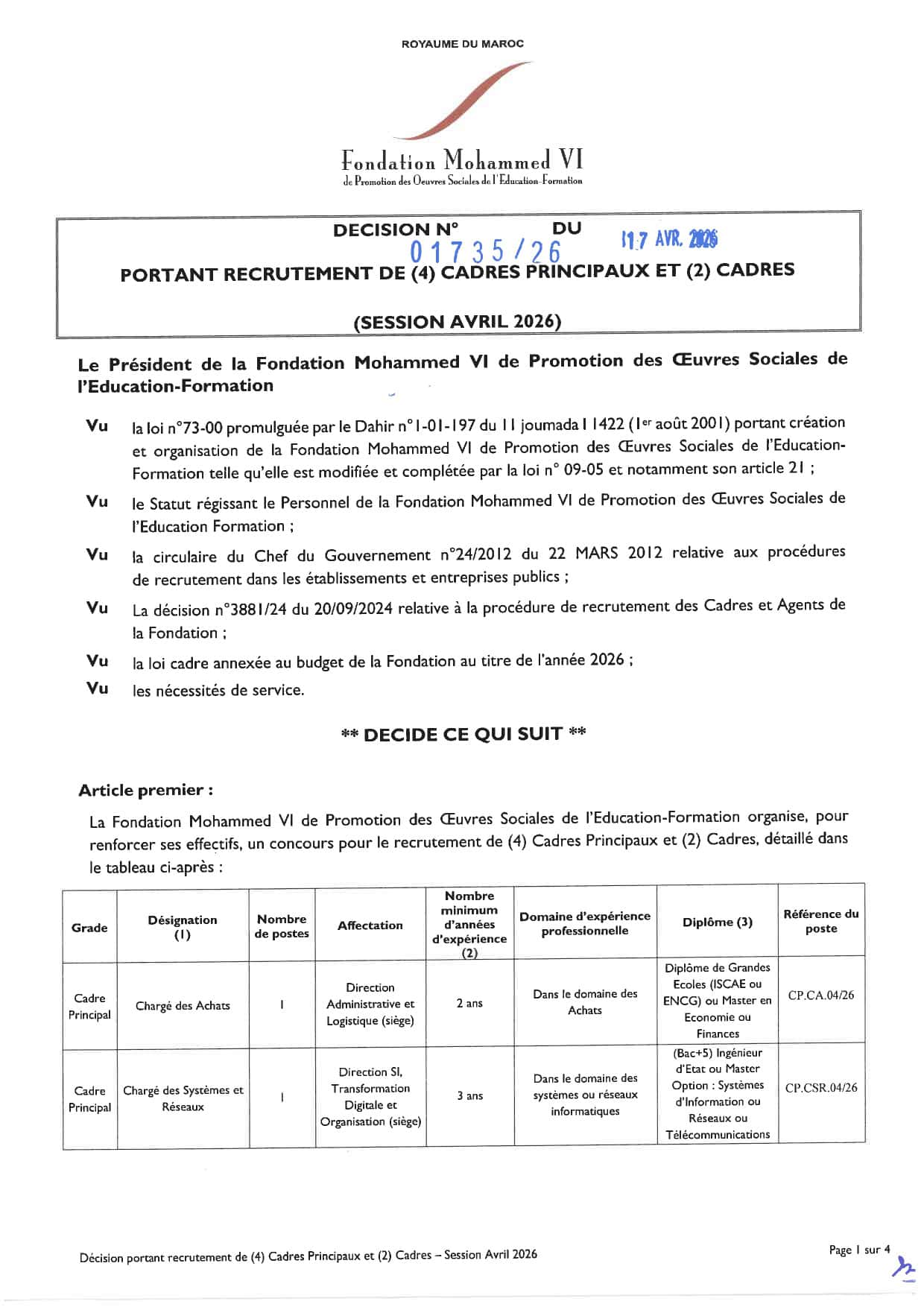 Concours de Recrutement Fondation Mohammed VI 2026 (6 Postes)