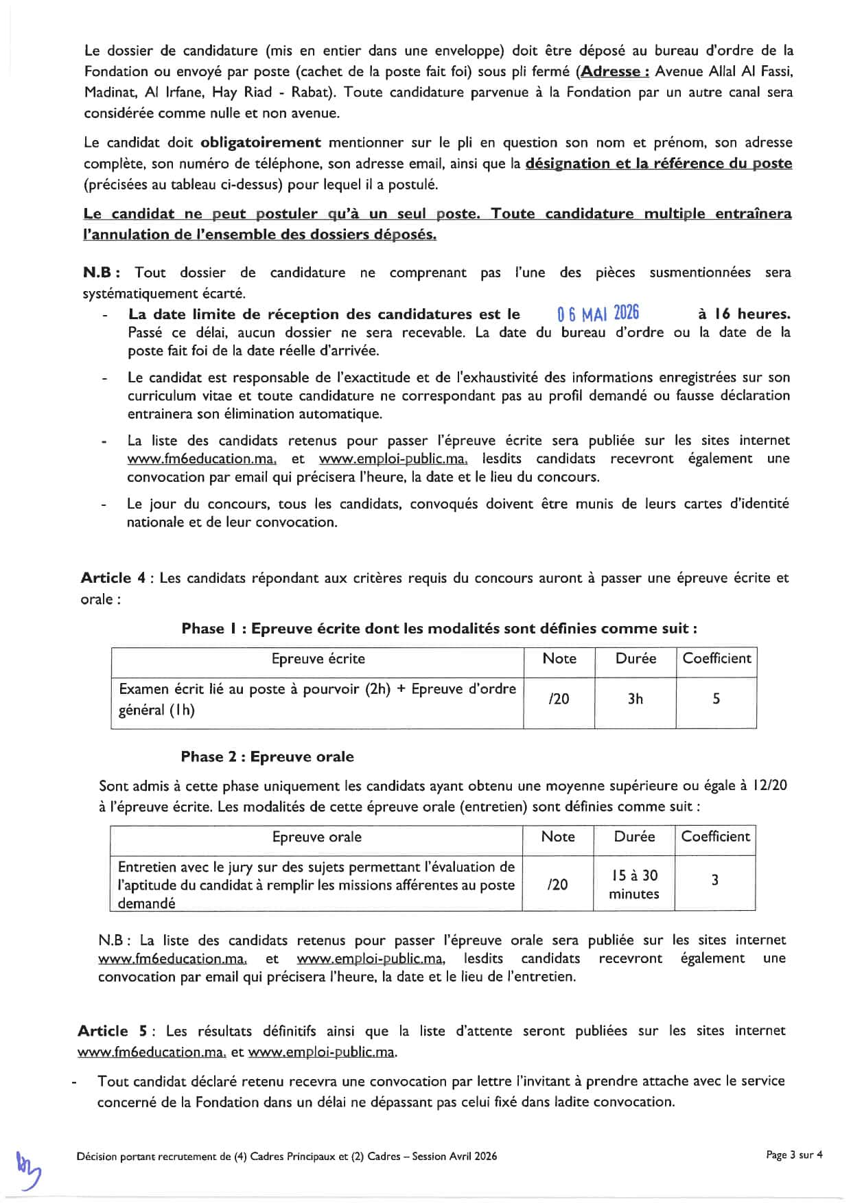 Date limite: 6 Mai 2026
