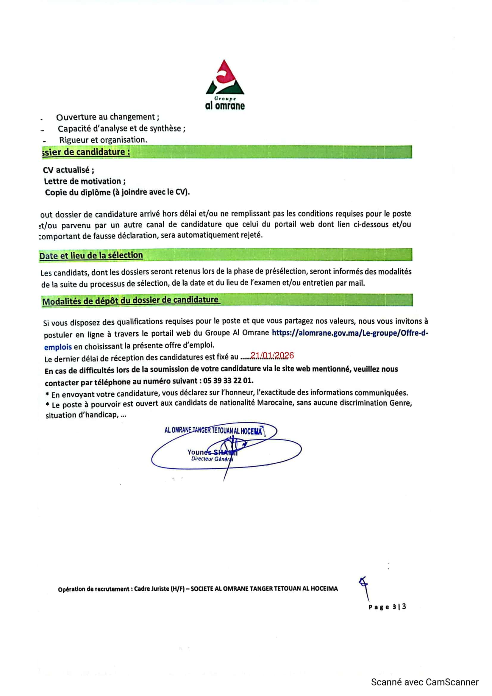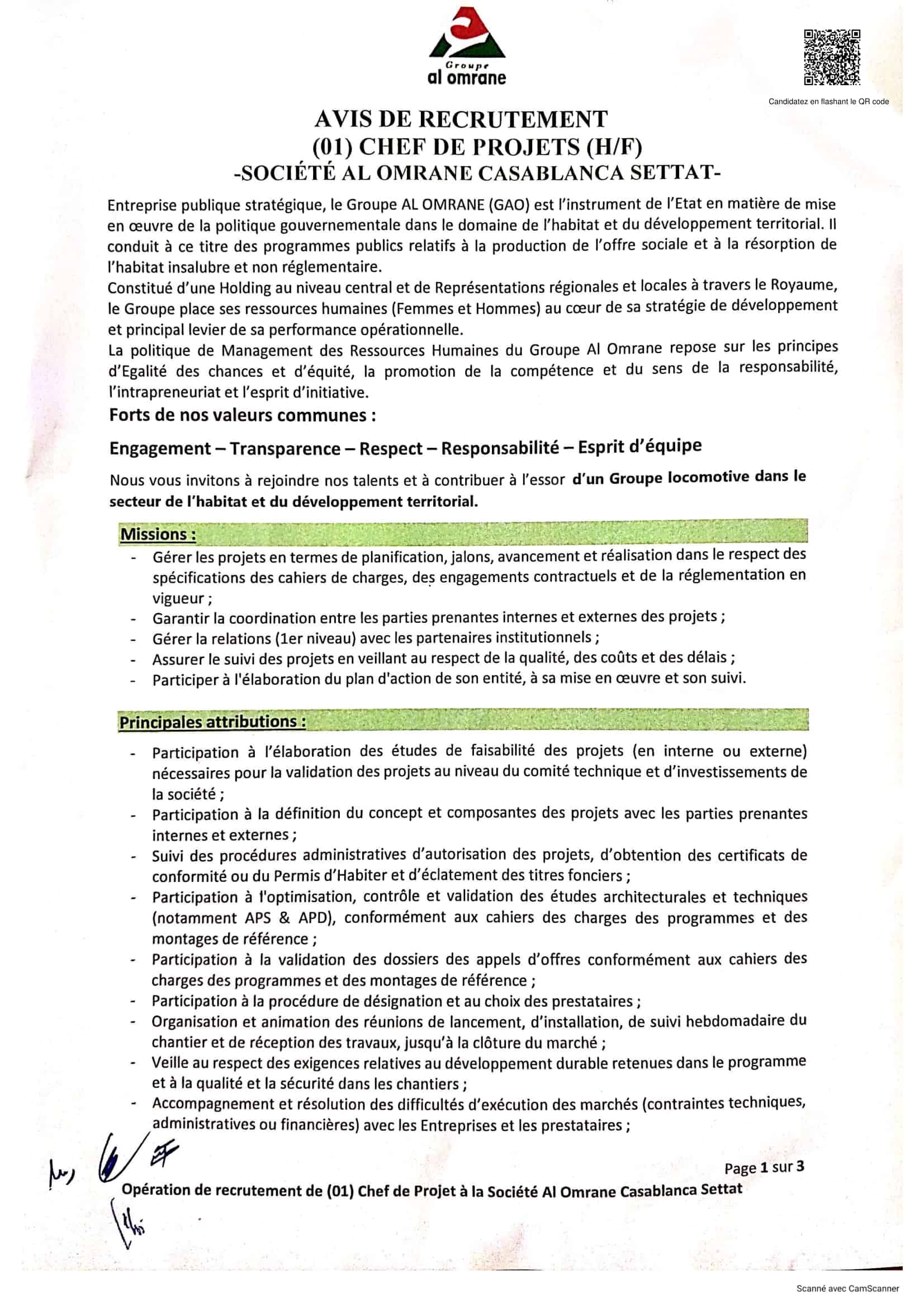 Le Groupe Al Omrane, acteur public stratégique dans le domaine de l'habitat et du développement urbain, organise un concours de recrutement pour 3 postes à pourvoir en 2026. Les positions disponibles comprennent un Cadre Juriste, un Chef de Projets et un Conseiller Commercial.