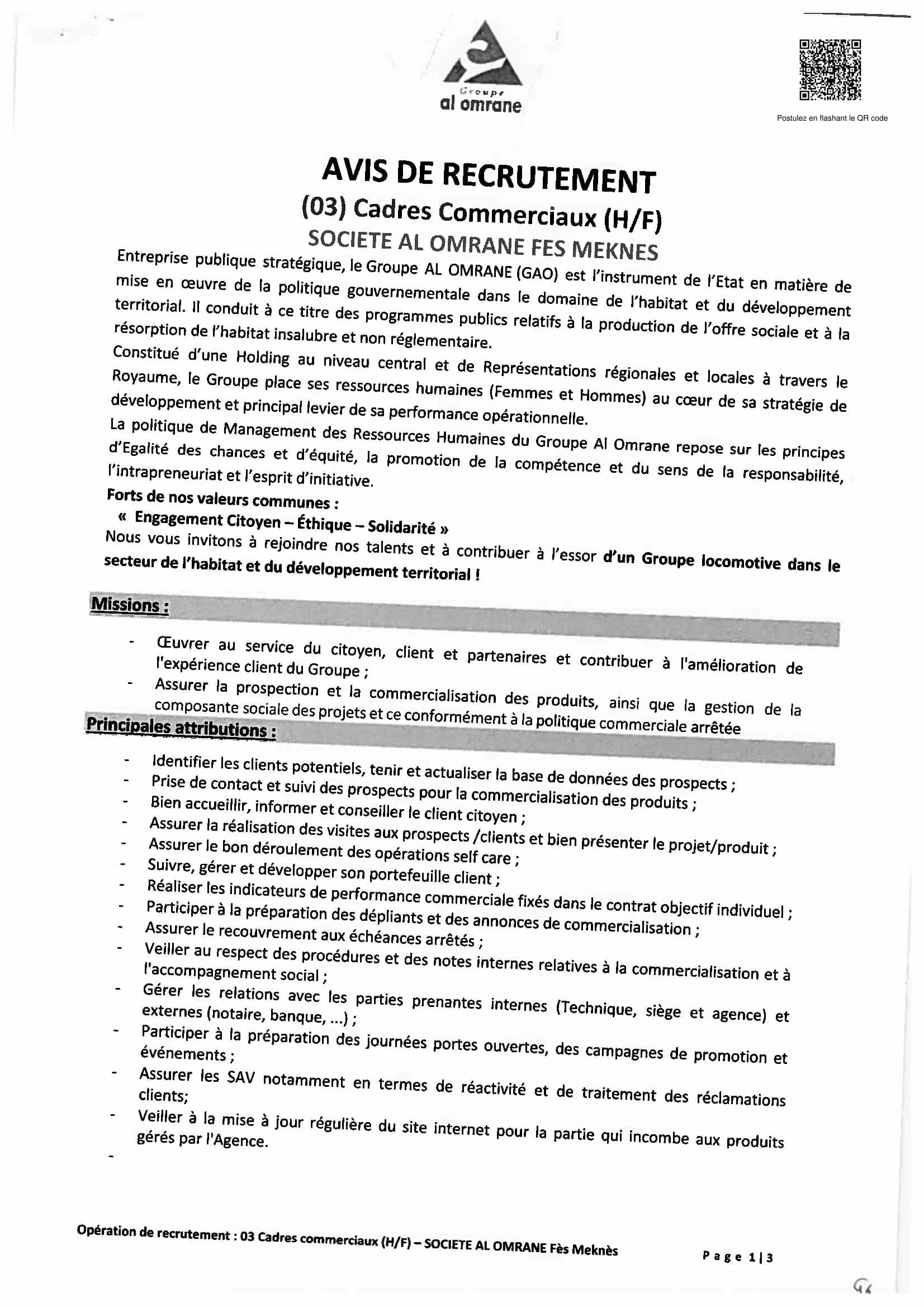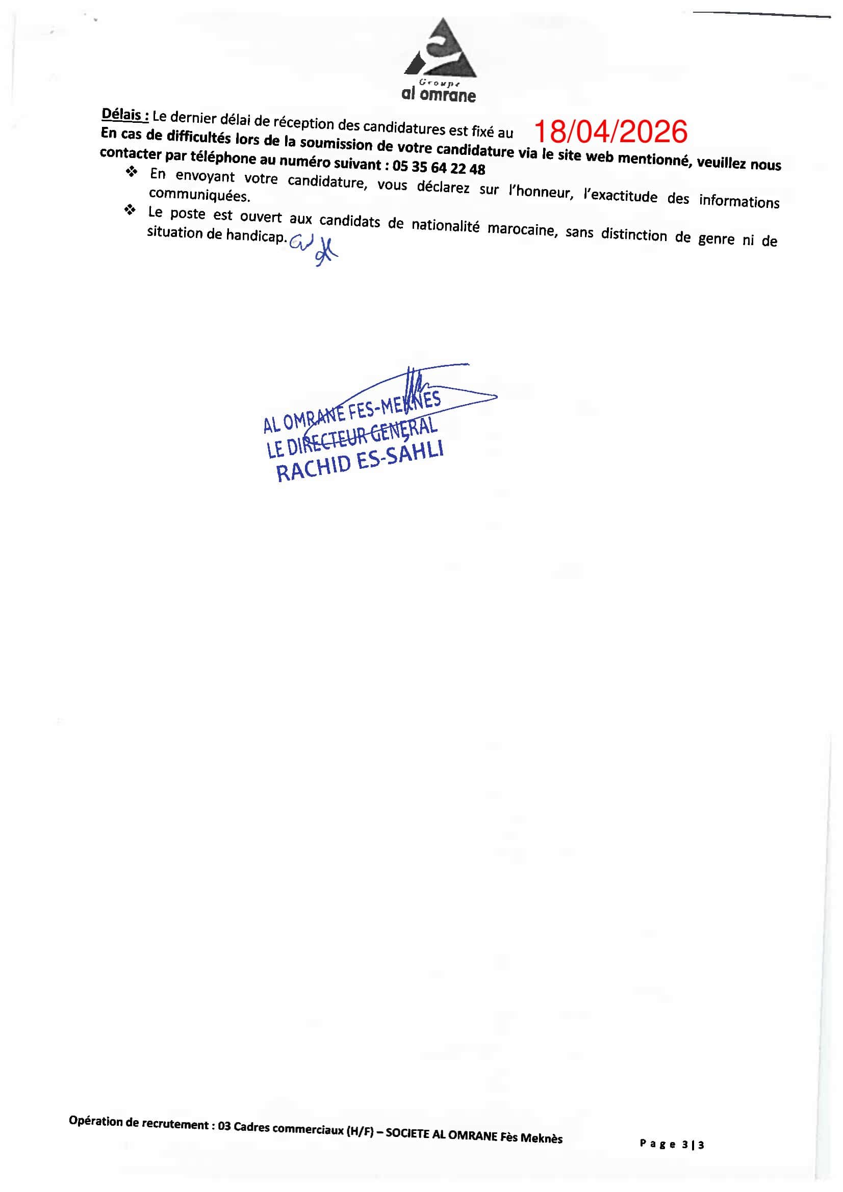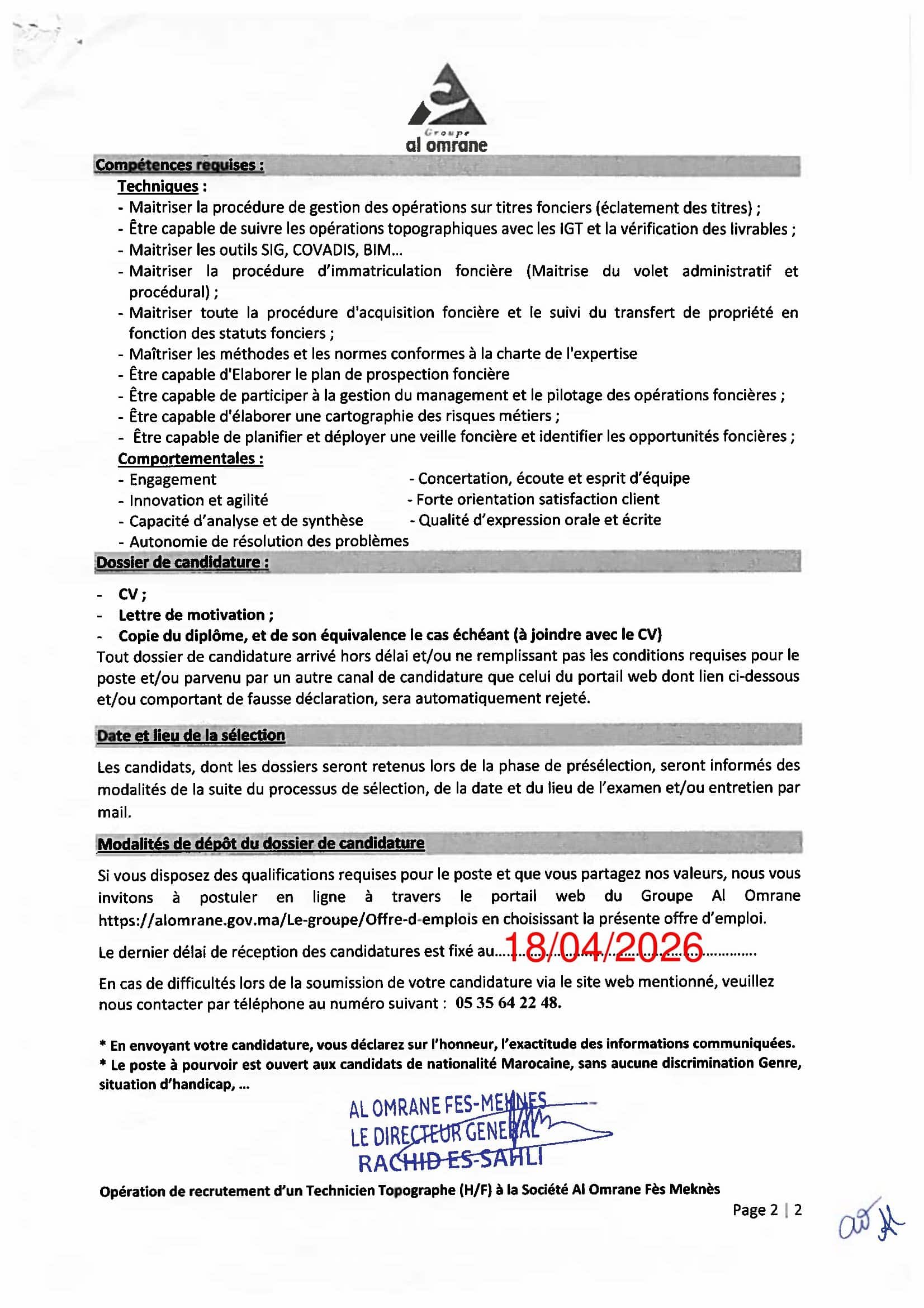 Lien pour postuler: https://alomrane.gov.ma/Carrieres/Offre-d-emplois