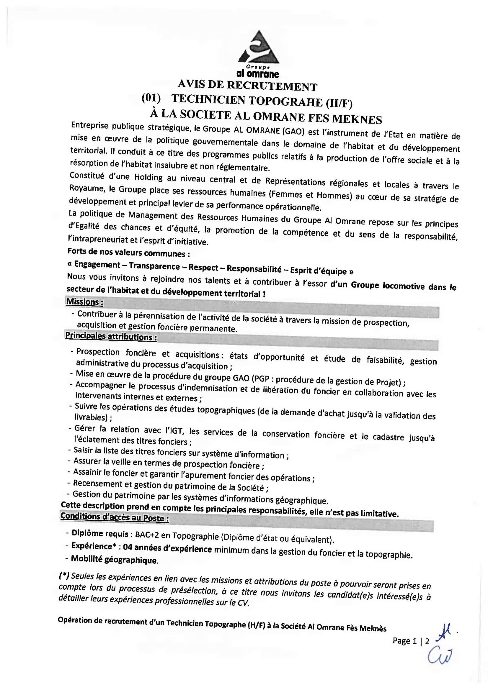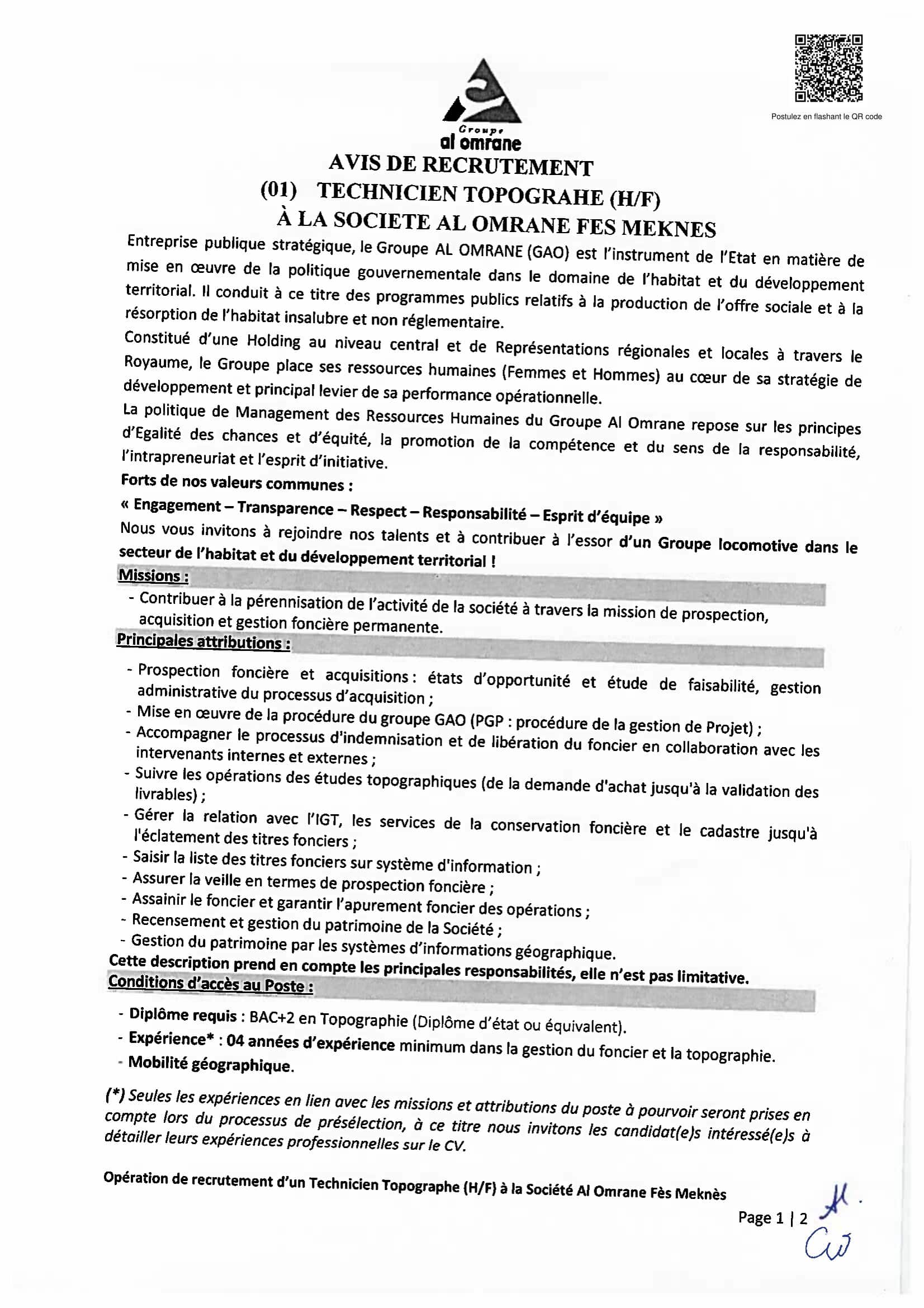 Concours de Recrutement Groupe Al Omrane 2026 pour (4 Postes)