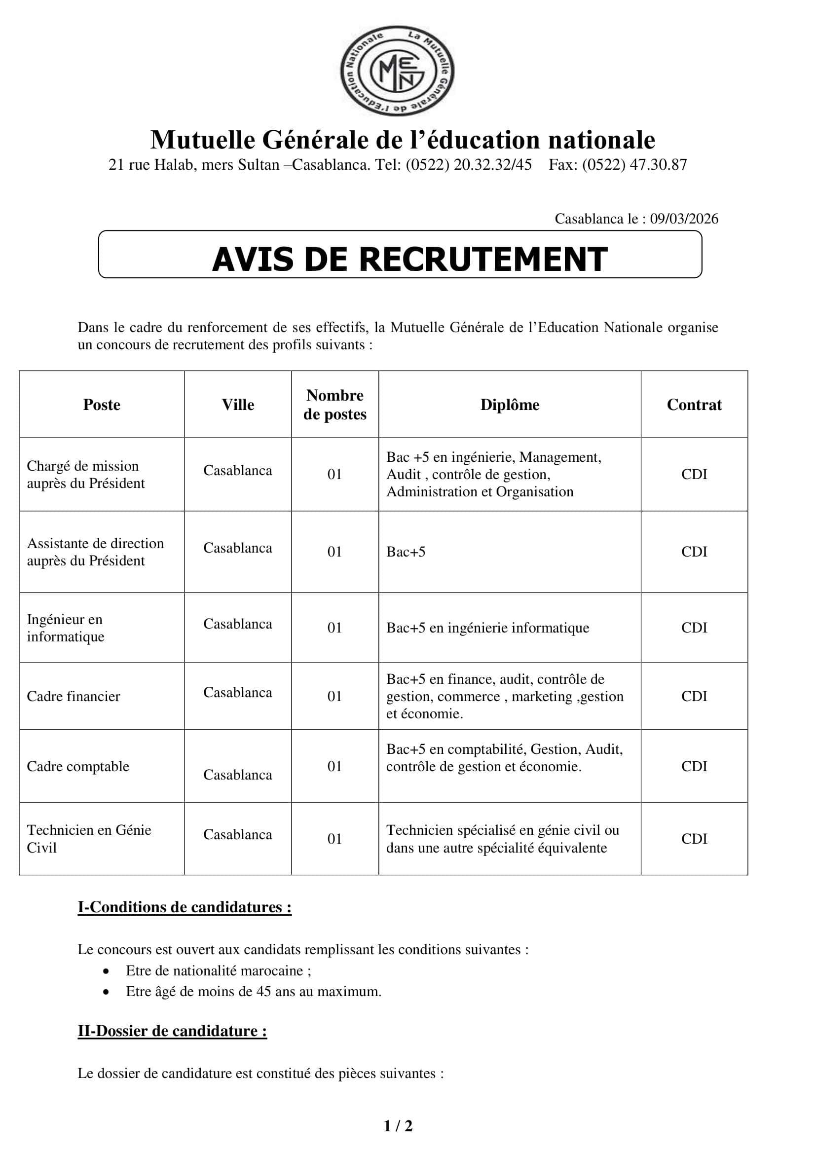 Concours de Recrutement MGEN 2026 (6 Postes)