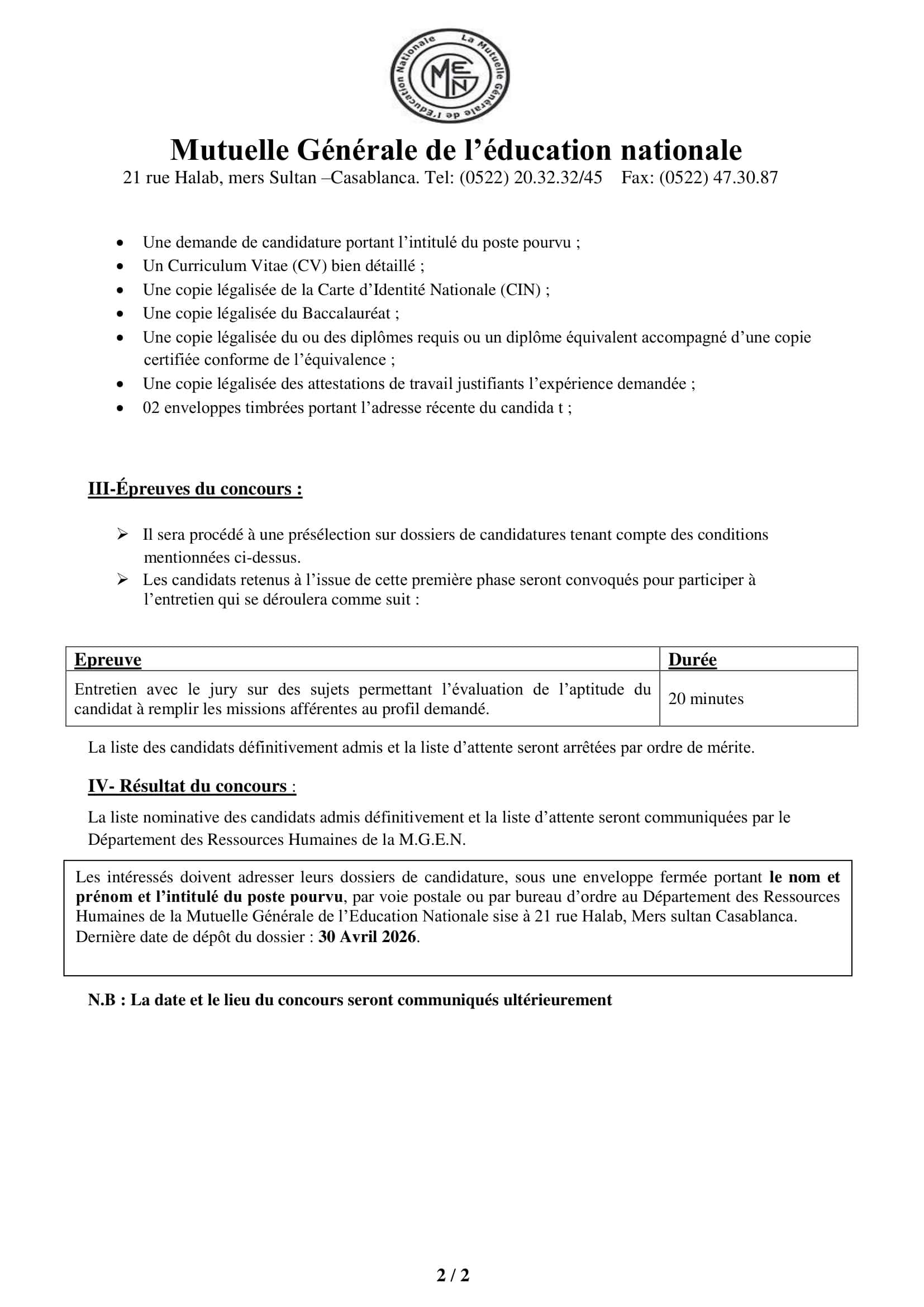 Mode de candidature: Dépôt en ligne via le site officiel de la MGEN ou par courrier postal