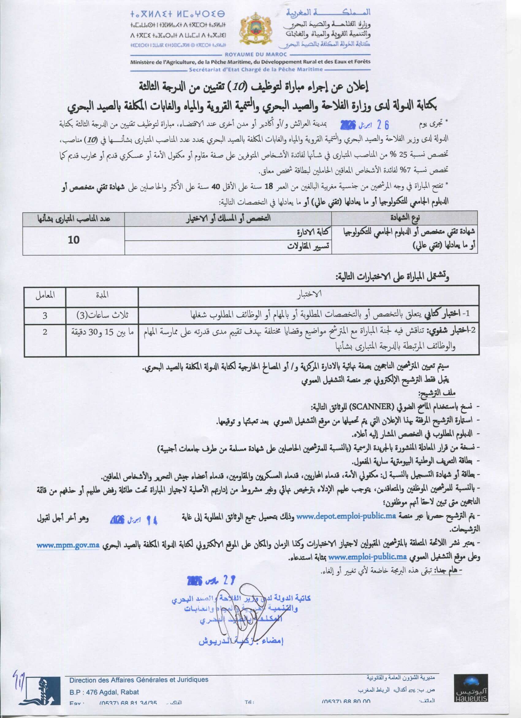 Concours de recrutement 2026 - Ministère de l’Agriculture