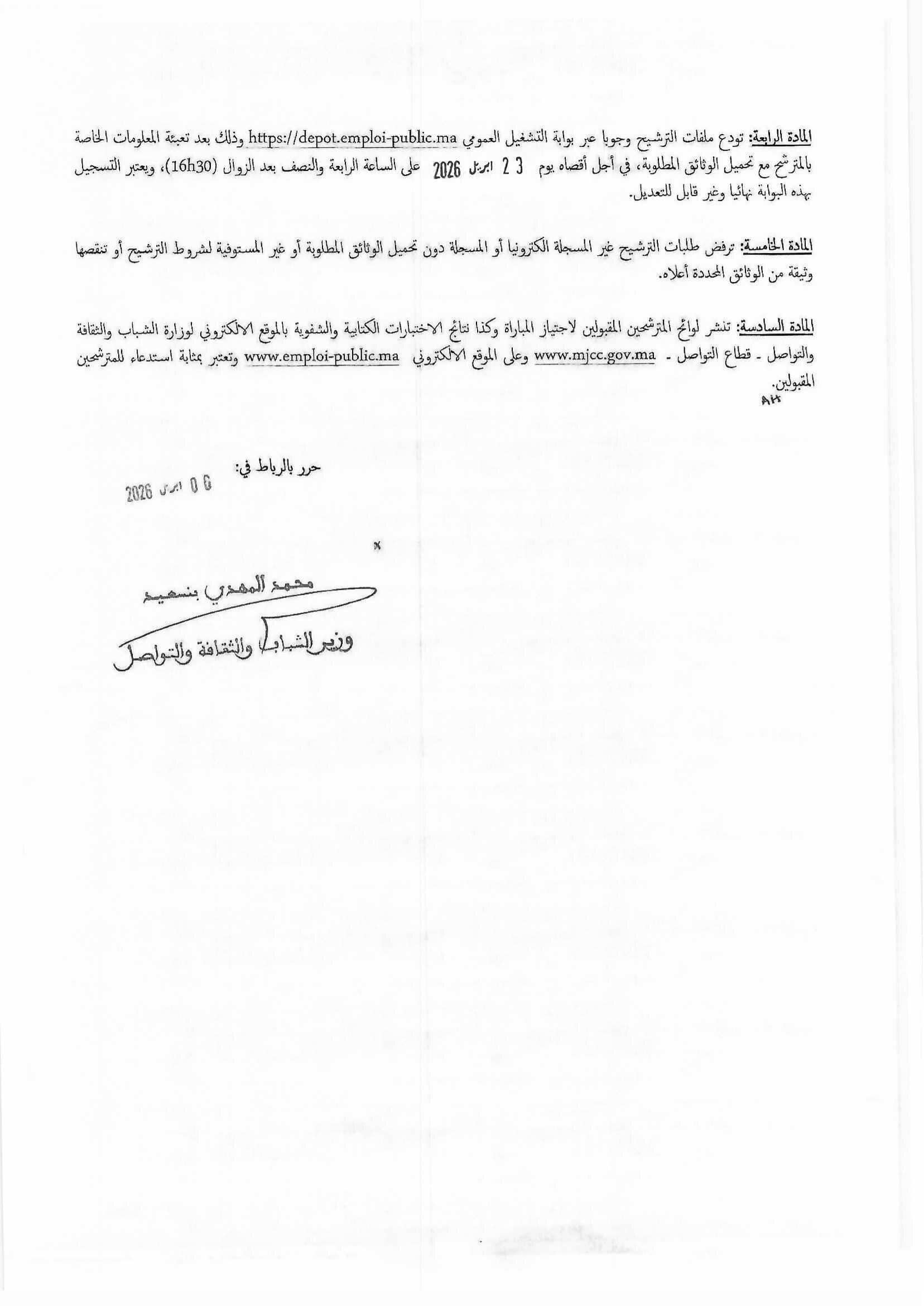 Date limite: 23 Avril 2026