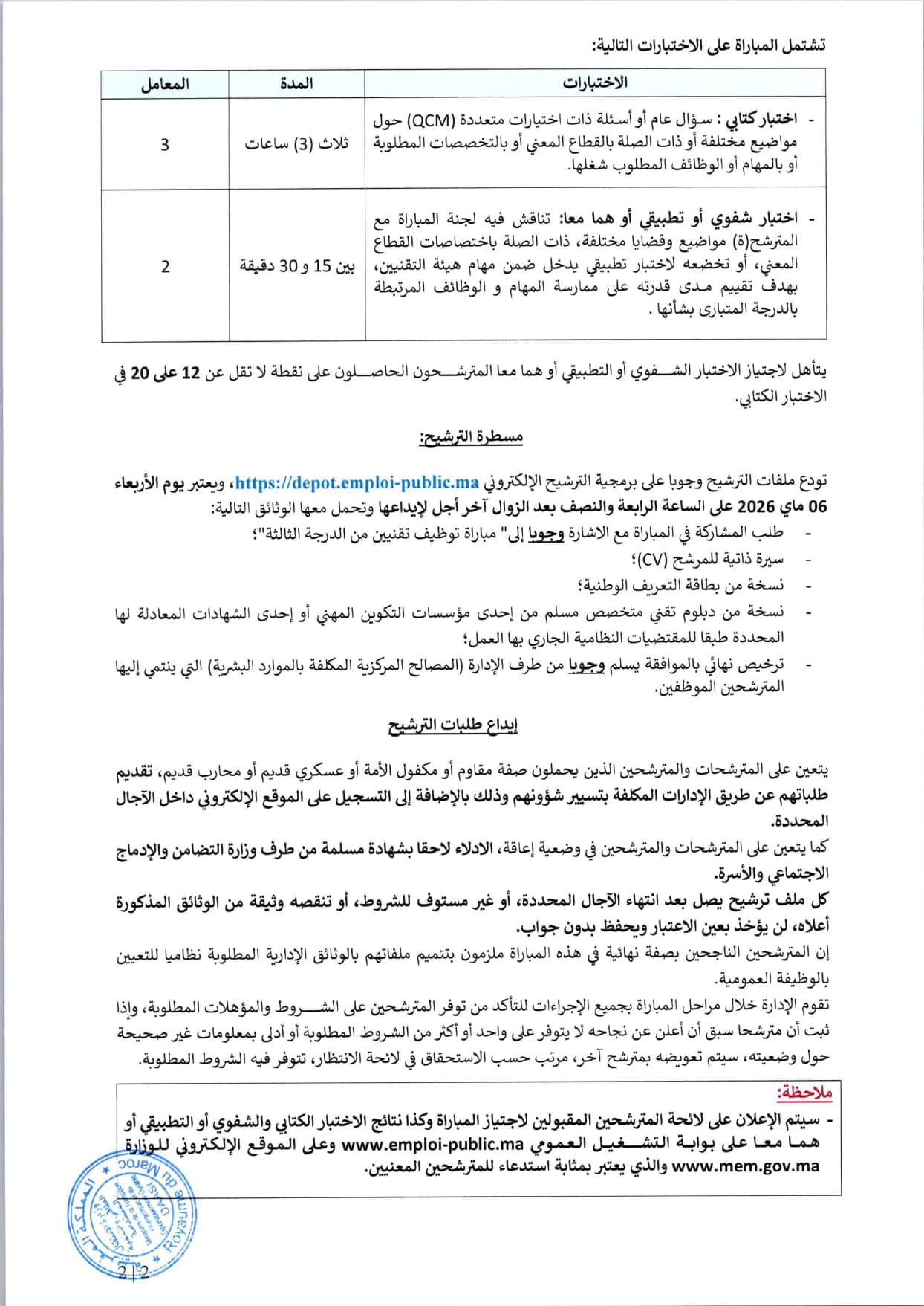 La date limite de candidature est fixée au 6 mai 2026, et le concours aura lieu le 24 mai 2026.