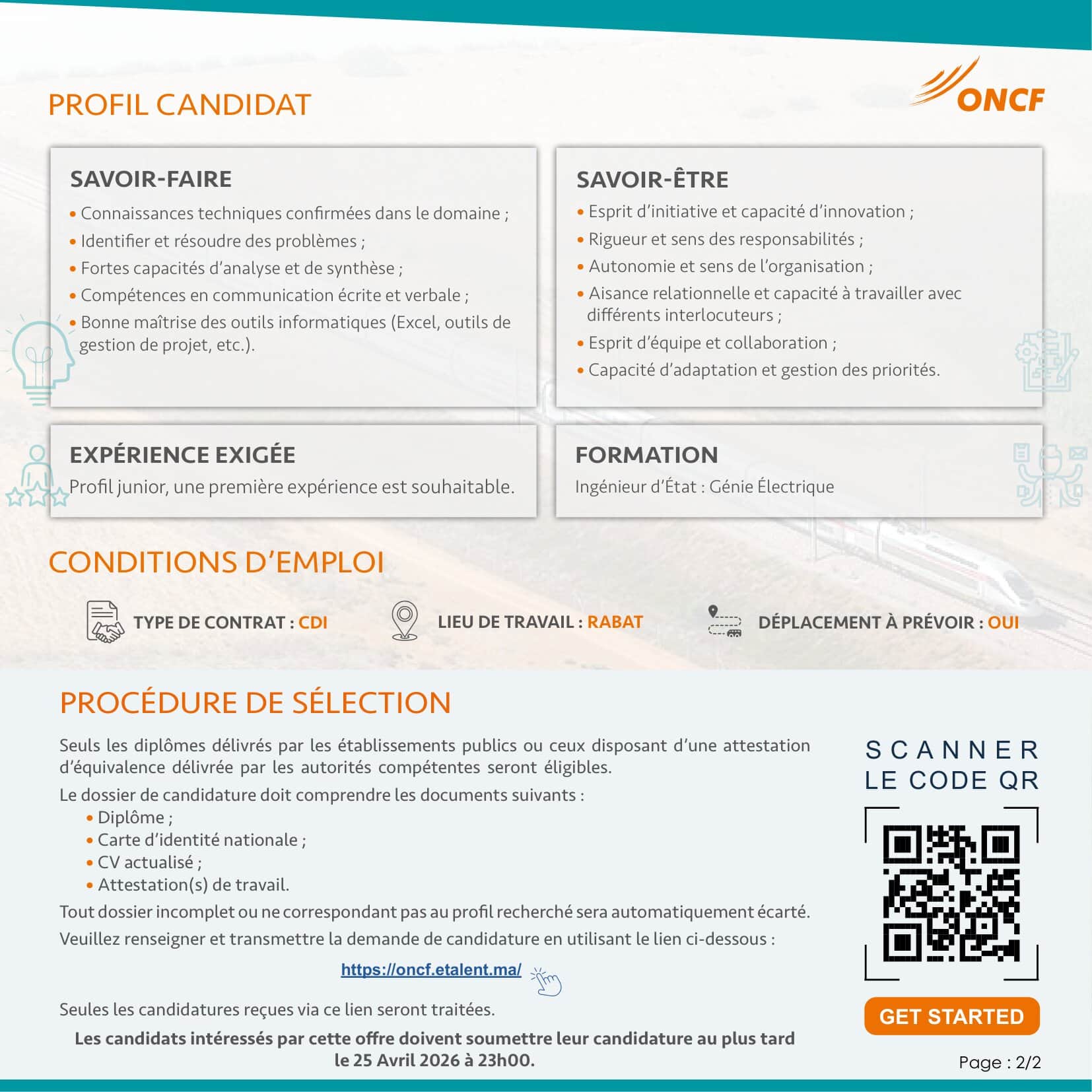 Les candidatures doivent être déposées exclusivement via la plateforme dédiée de l'ONCF. Les dossiers incomplets ou ne correspondant pas au profil seront écartés.