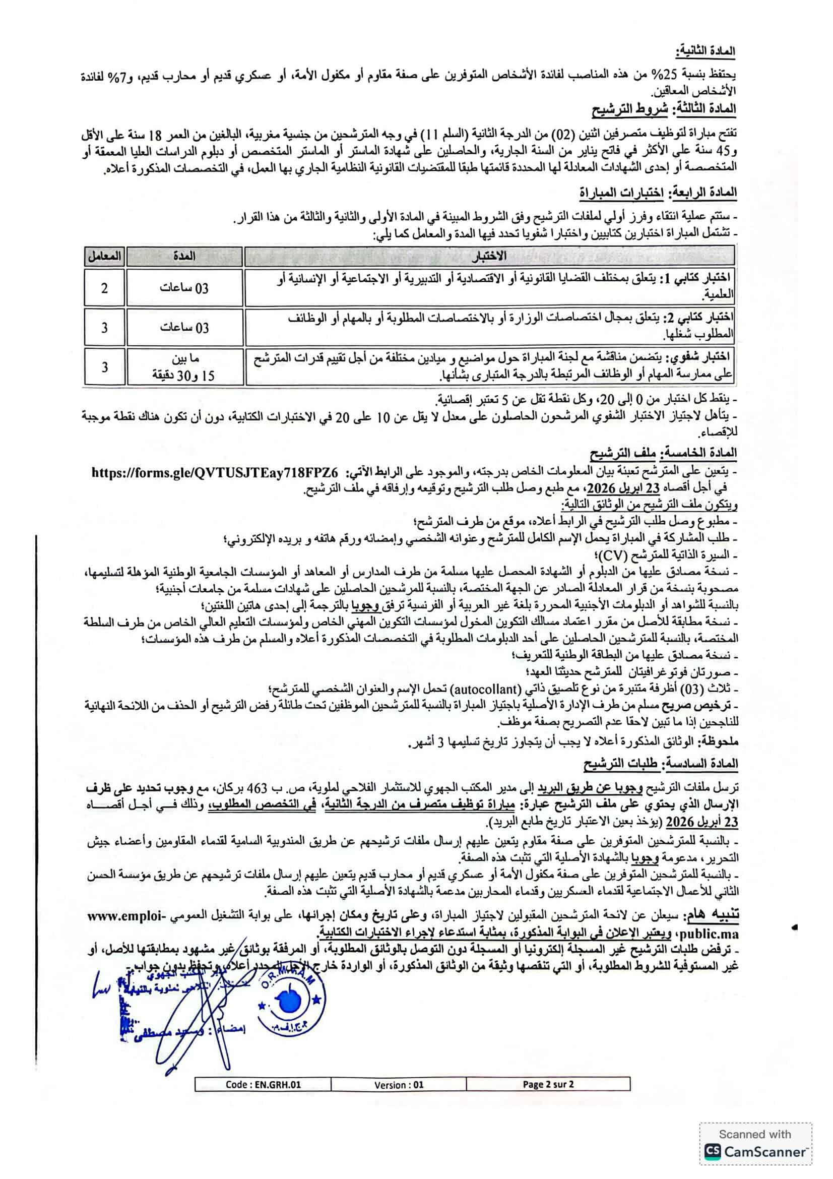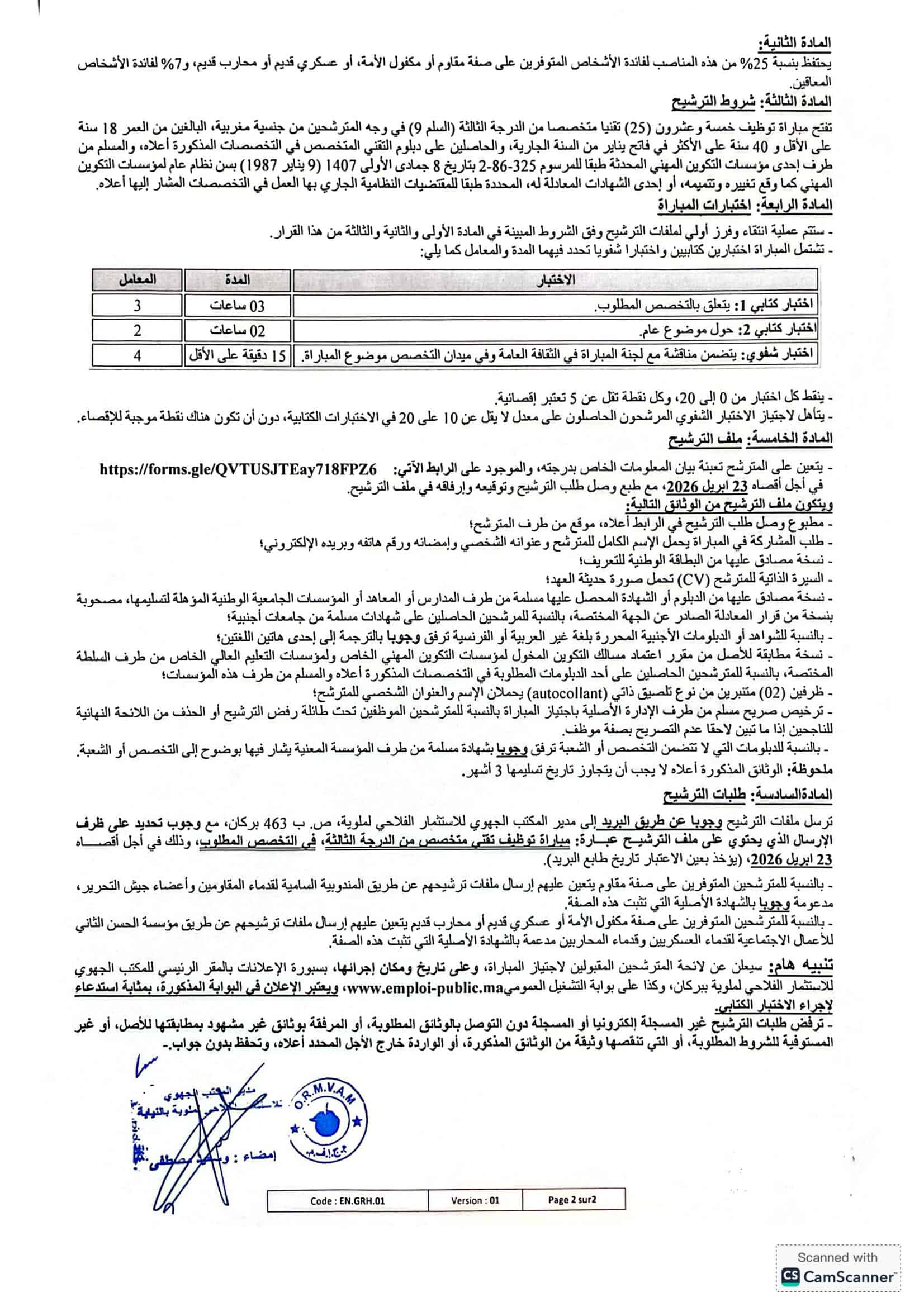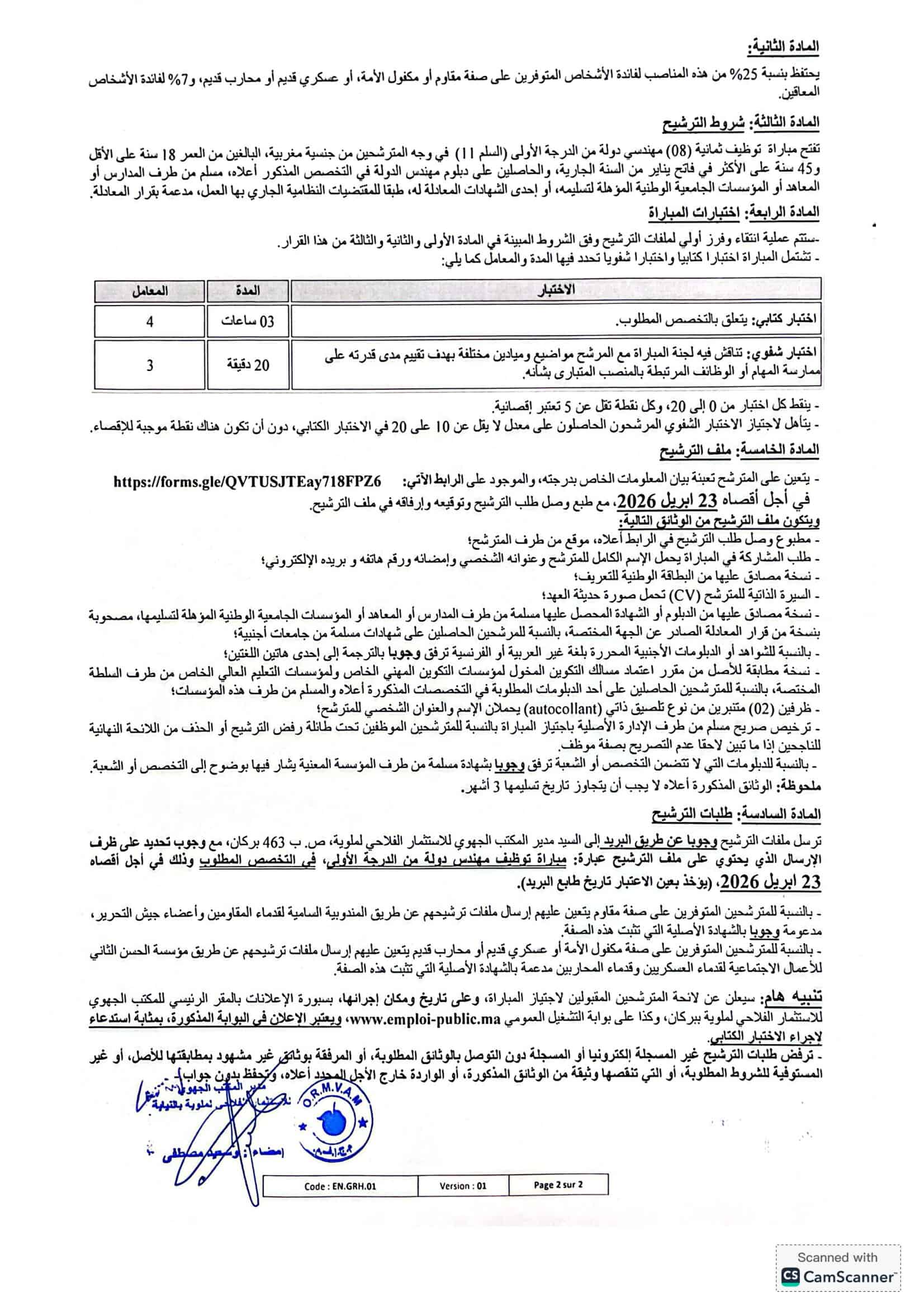 Annonce de Recrutement ORMVAM 2026