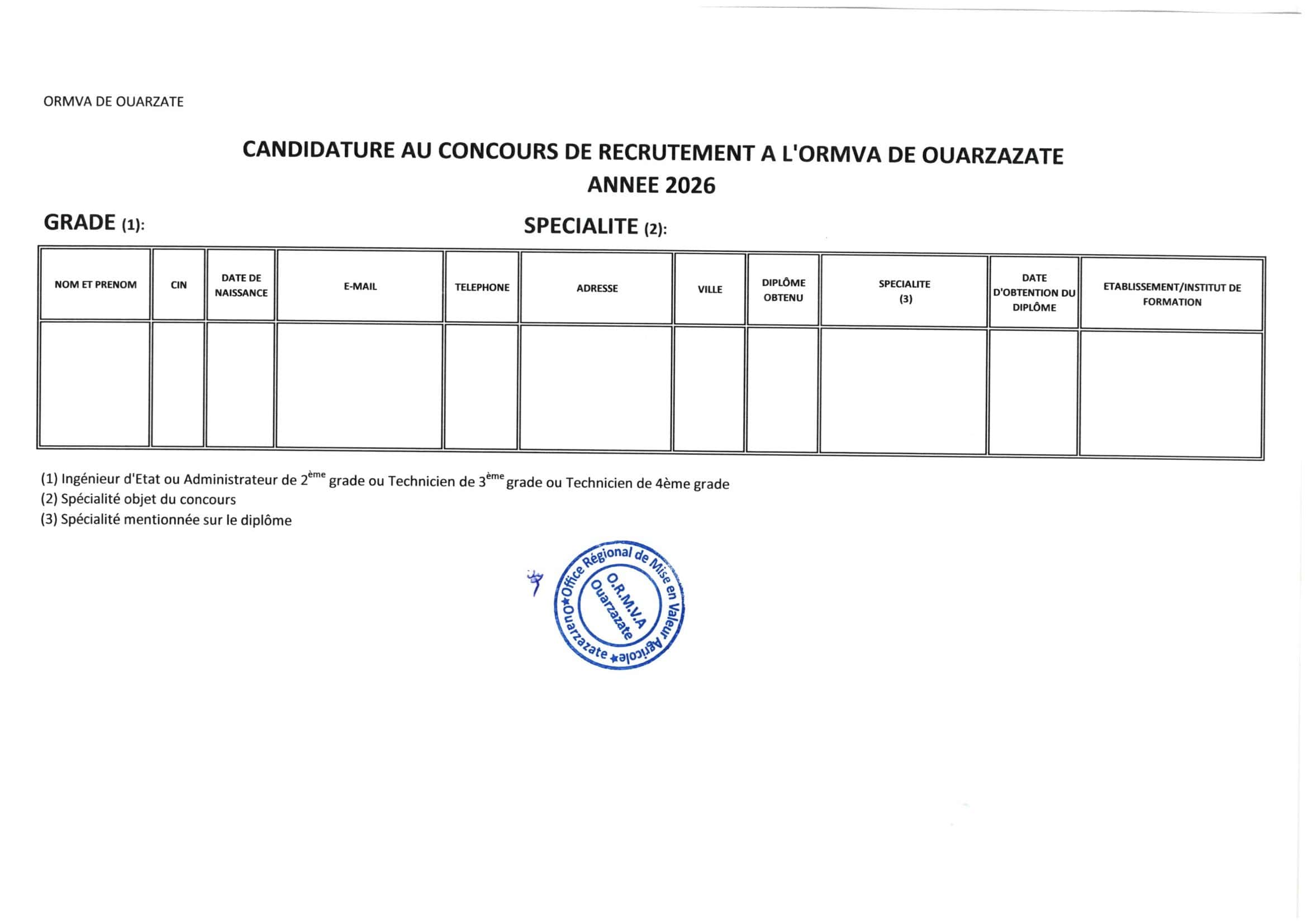 Concours de Recrutement ORMVAO 2026 (20 Postes)