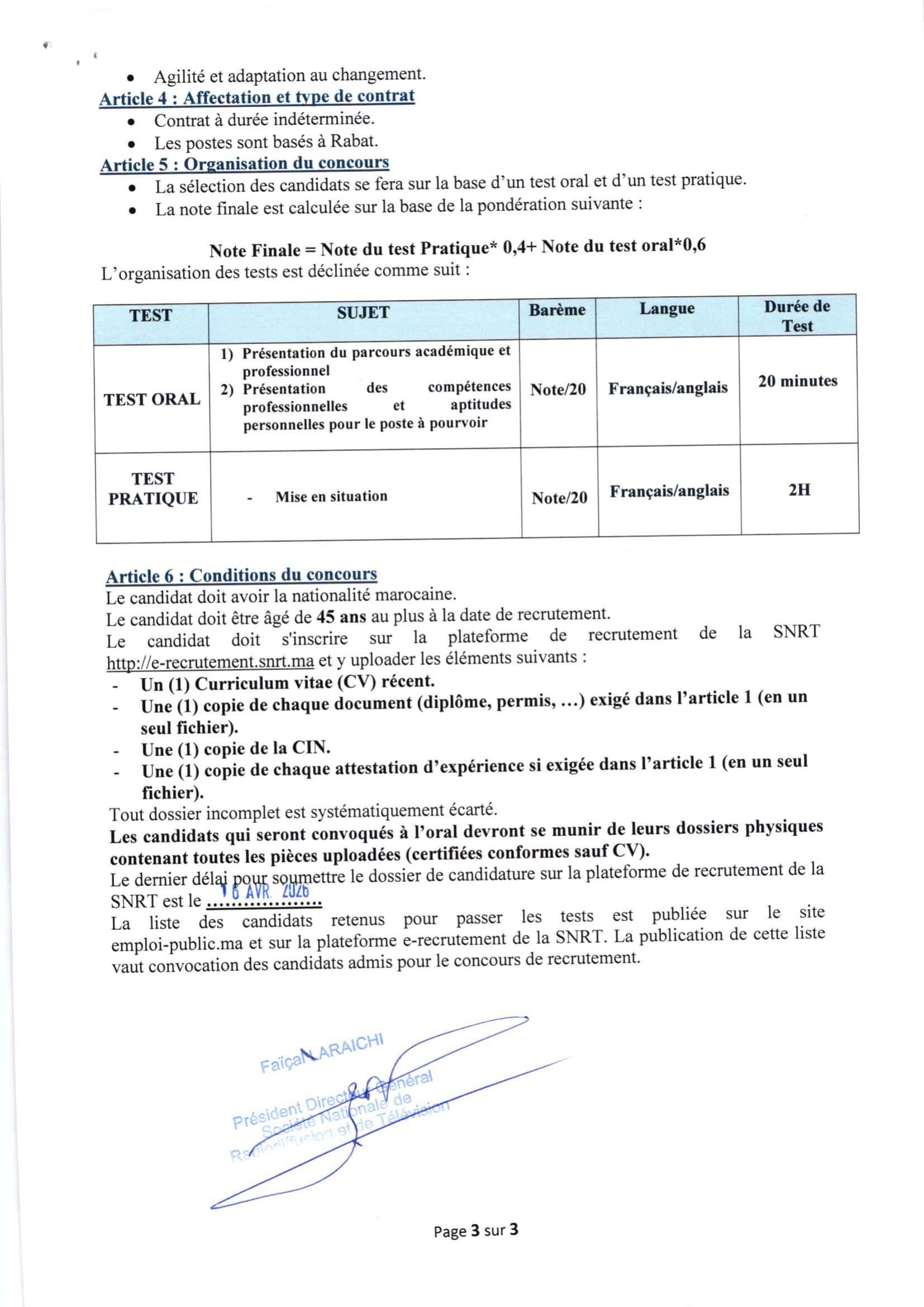 Concours de Recrutement SNRT 2026 pour (7 Postes)