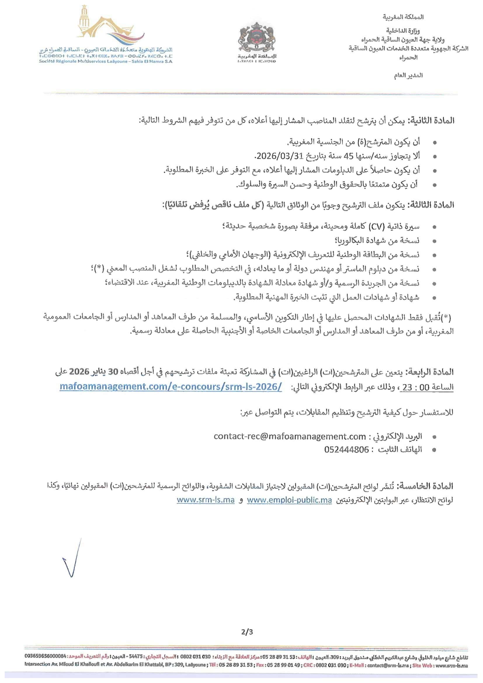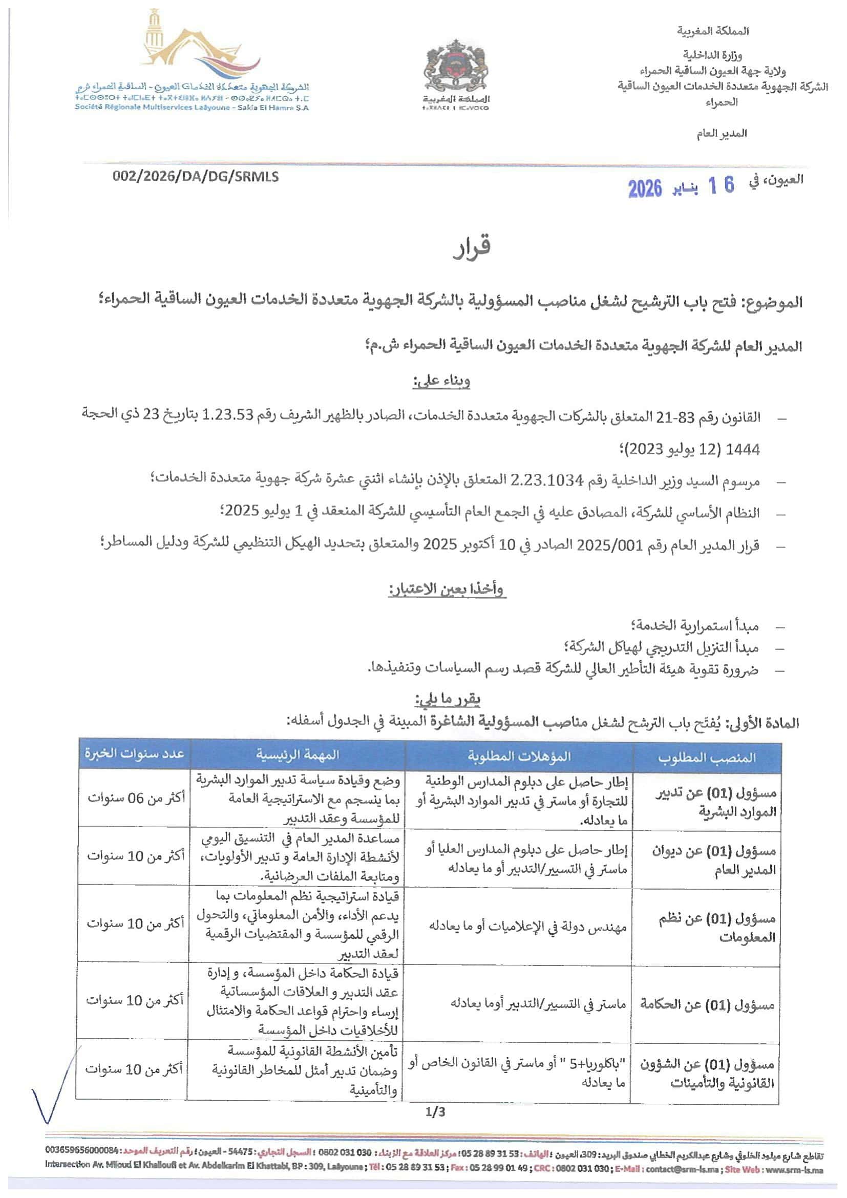 Concours de Recrutement SRM Laâyoune-Sakia El Hamra 2026 (5 Postes)