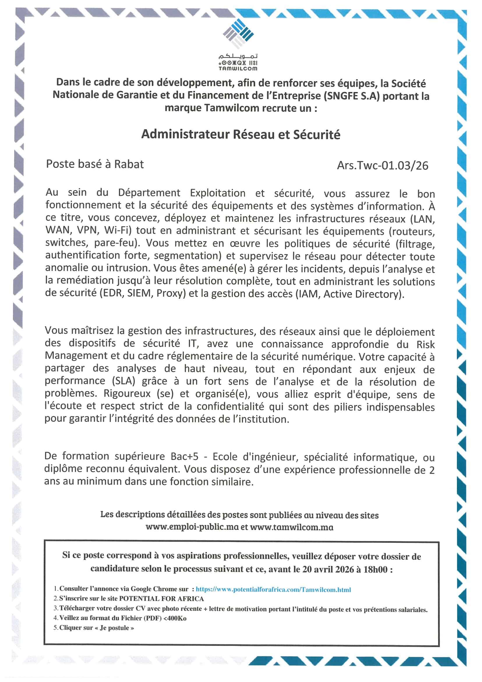 Concours de Recrutement TAMWILCOM 2026 pour (4 Postes)