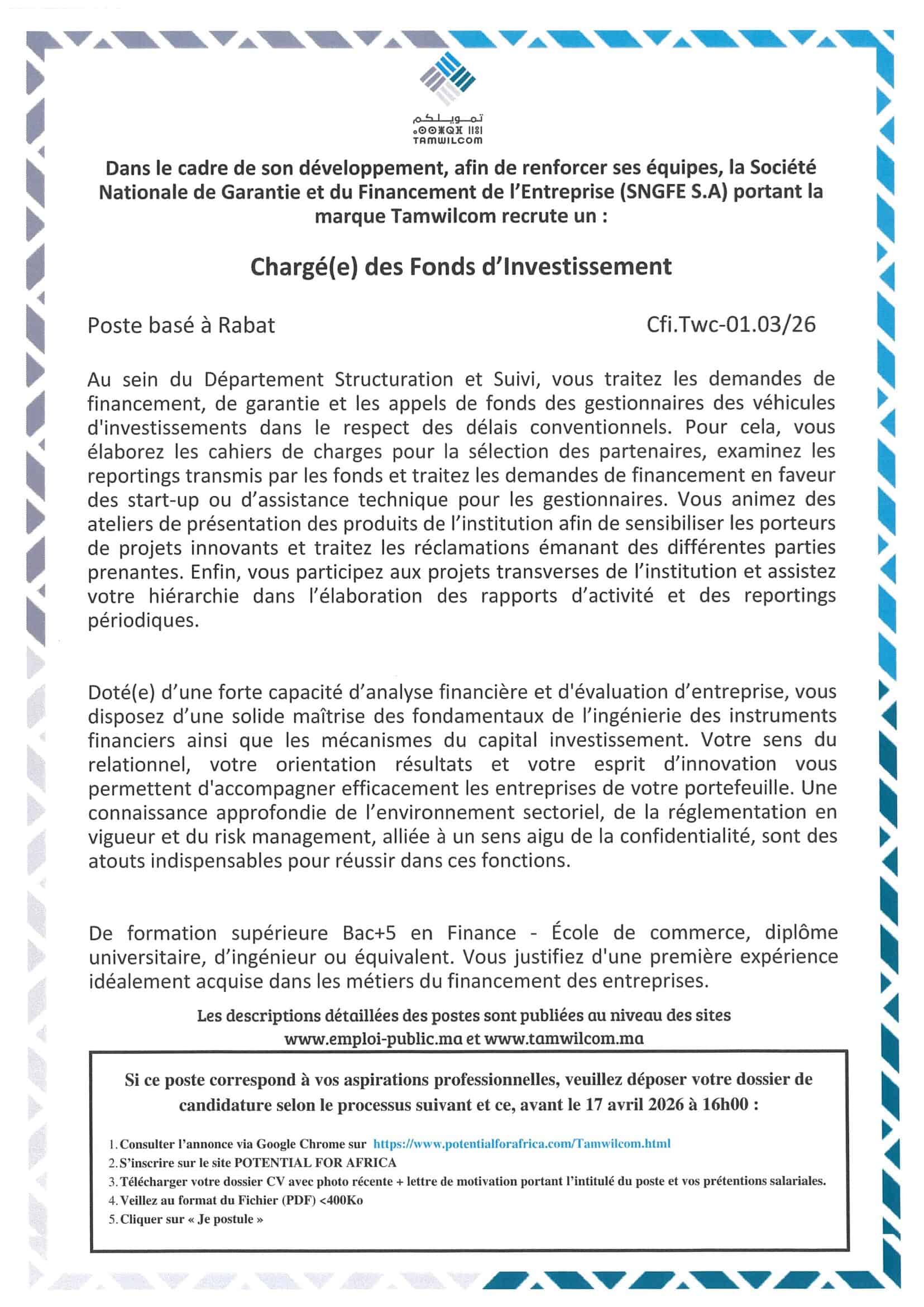 Télécharger le document 1 Télécharger le document 2 Télécharger le document 3Chargé(e) des Fonds d'Investissement