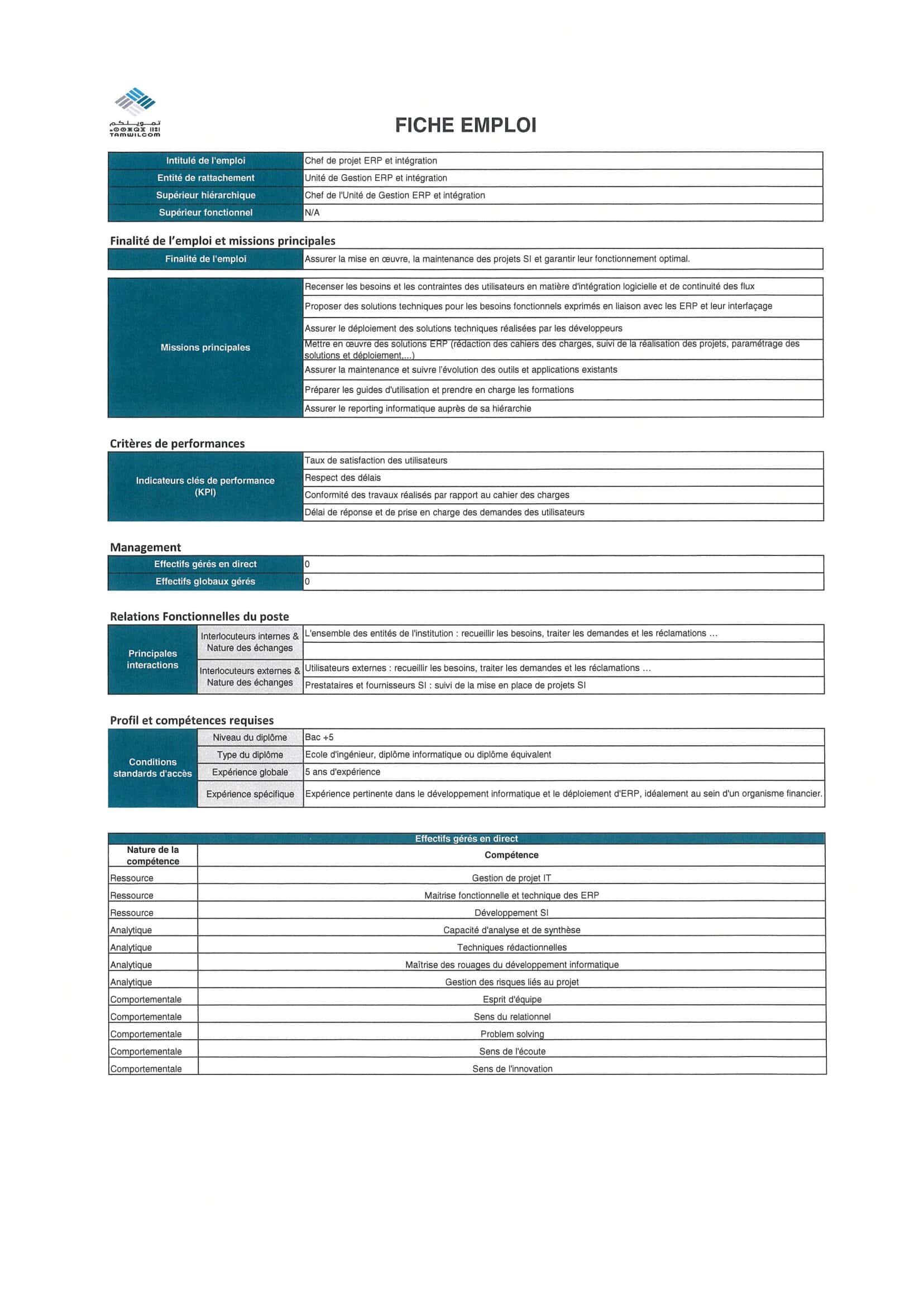 - Chef de Projet ERP et Intégration
