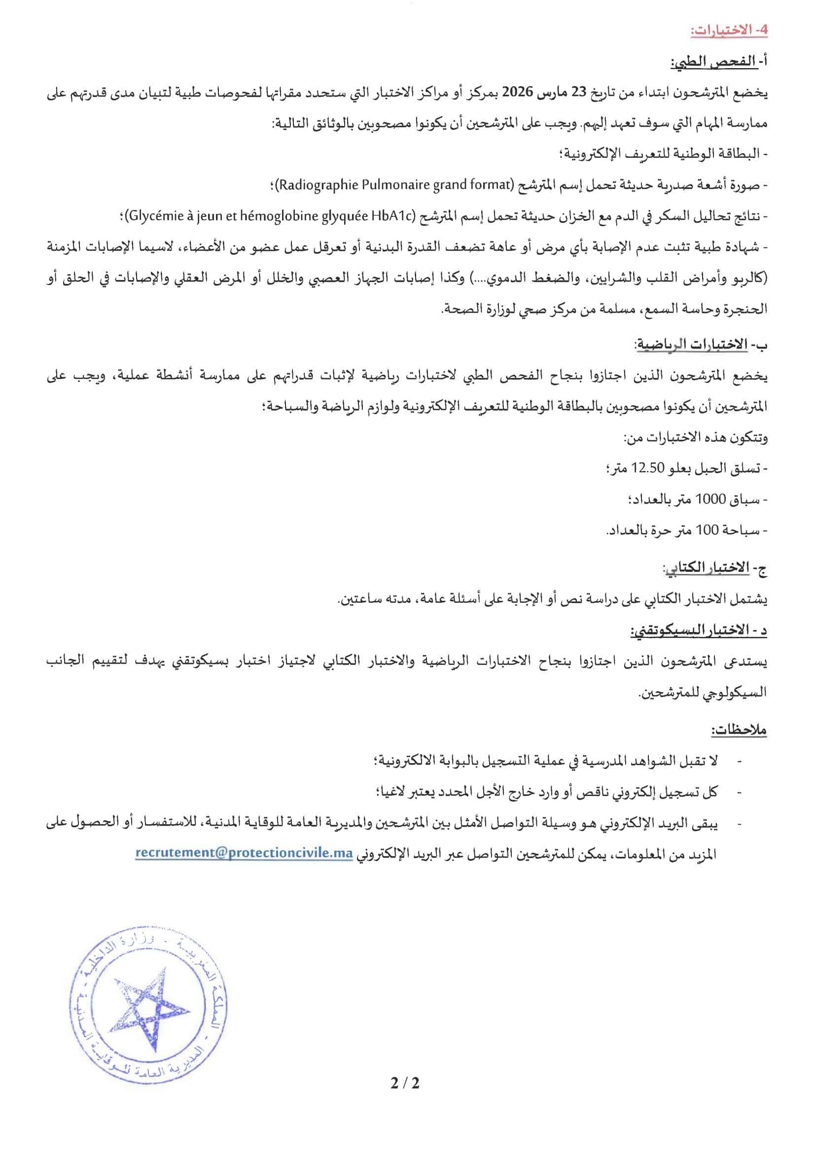 - Communication via email : recrutement@protectioncivile.ma