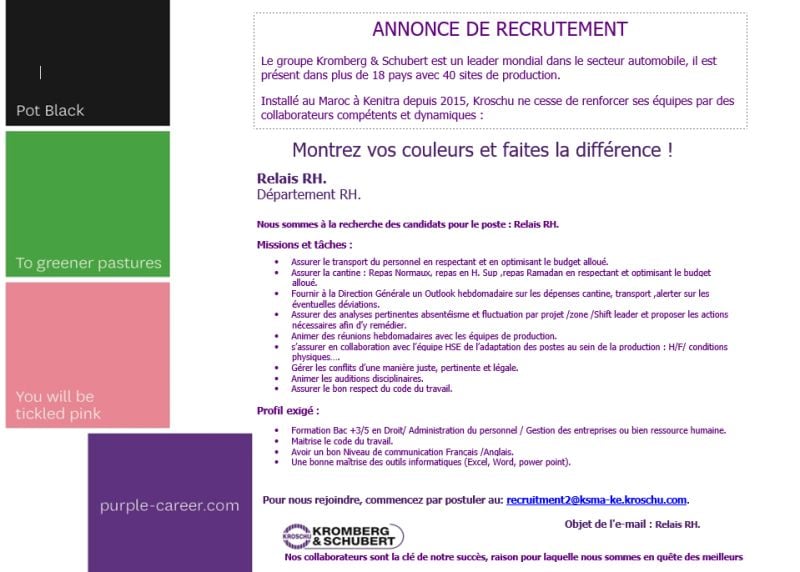 Les candidatures doivent être envoyées à l'adresse recruitment2@ksma-ke.kroschu.com en précisant l'intitulé exact du poste visé dans l'objet du mail.