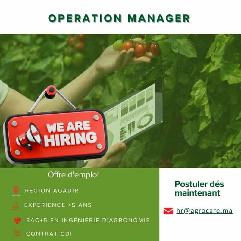 • Manager des Opérations : Bac+5 en agronomie/ingénierie, 5-10 ans d'expérience, compétences en production agricole et amélioration continue