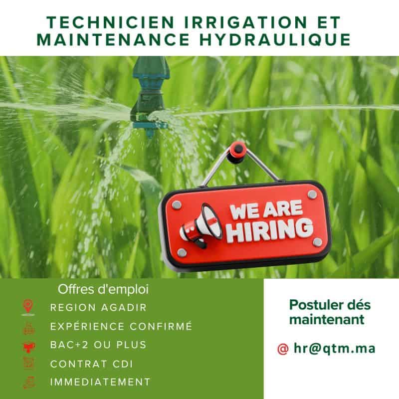 Technicien Irrigation et Maintenance Hydraulique – Chtouka Ait Baha