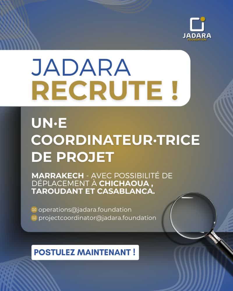 Jadara Foundation recherche un(e) Stagiaire en Finance à Casablanca et un(e) Coordinateur(trice) de Projet à Marrakech, en stage rémunéré et en contrat de projet. Les postes s'adressent à des profils engagés, souhaitant contribuer à l'employabilité et à l'entrepreneuriat des jeunes issus de milieux défavorisés.