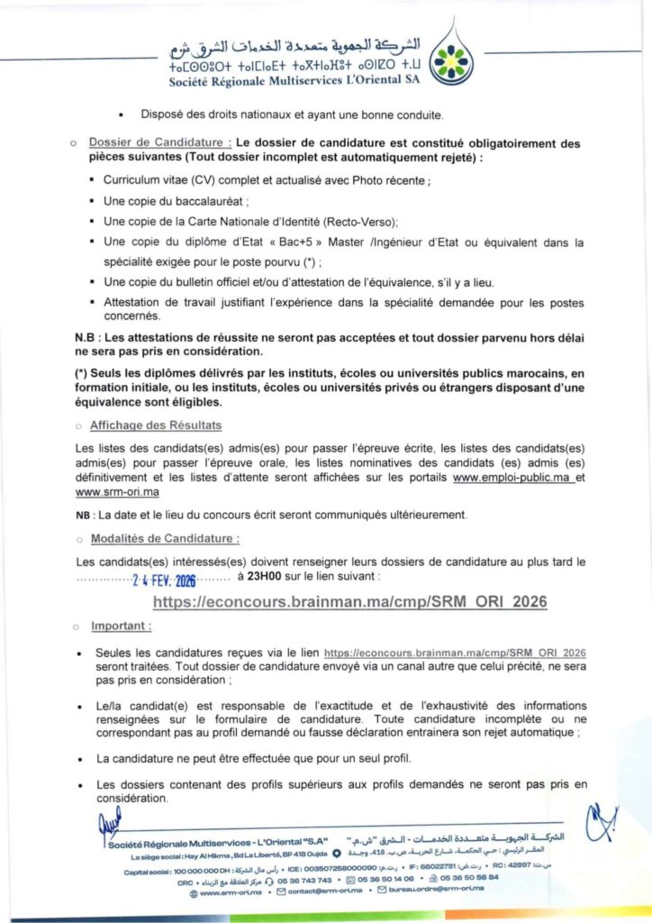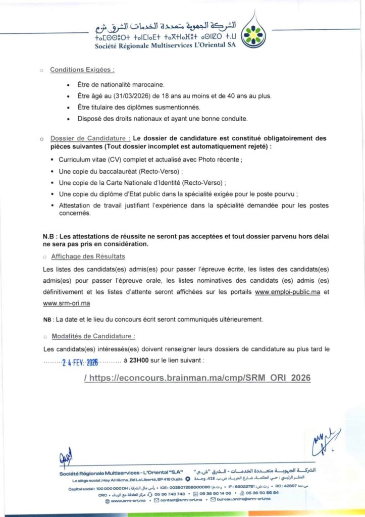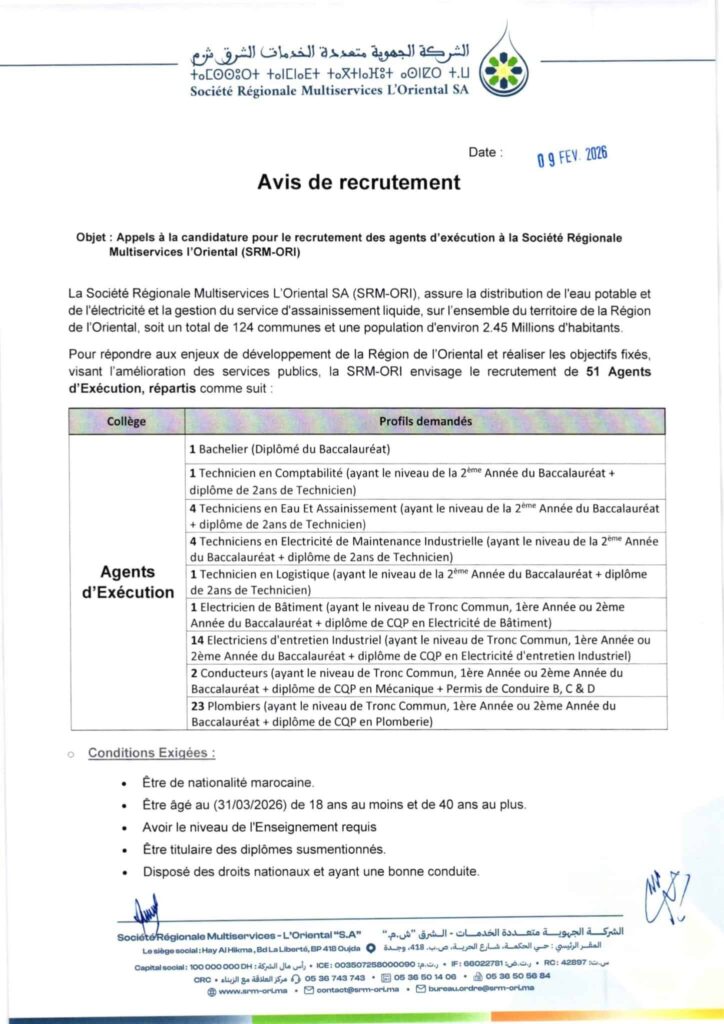 مباراة توظيف (230) منصب بالشركة الجهوية متعددة الخدمات الشرق، آخر أجل 24 فبراير 2026