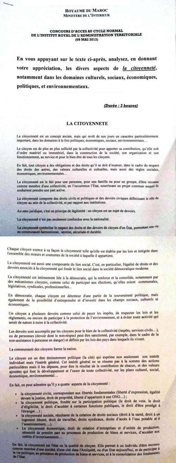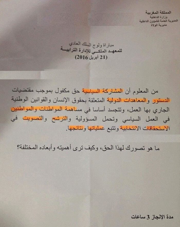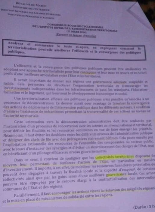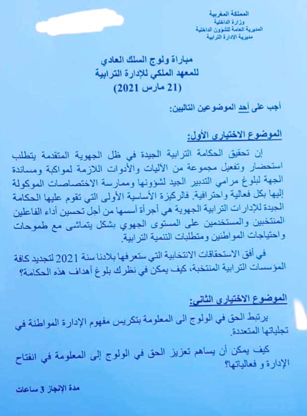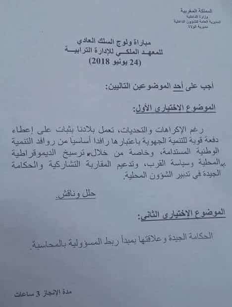 نماذج مباريات القياد لولوج المعهد الملكي للإدارة الترابية