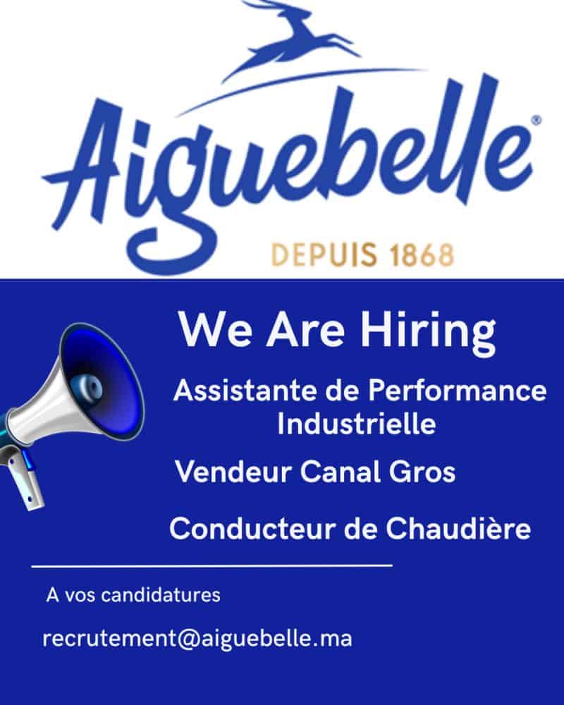 Mode de candidature: Envoyer CV et lettre de motivation à recrutement@aiguebelle.ma