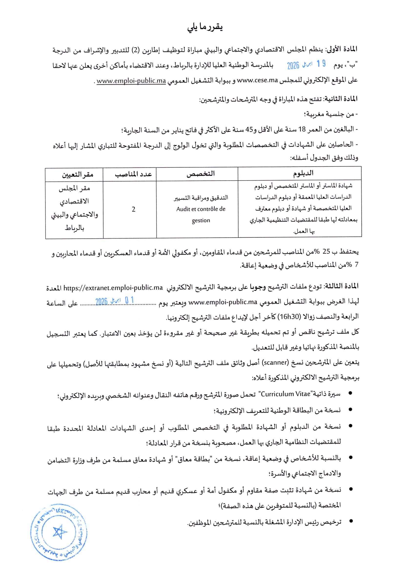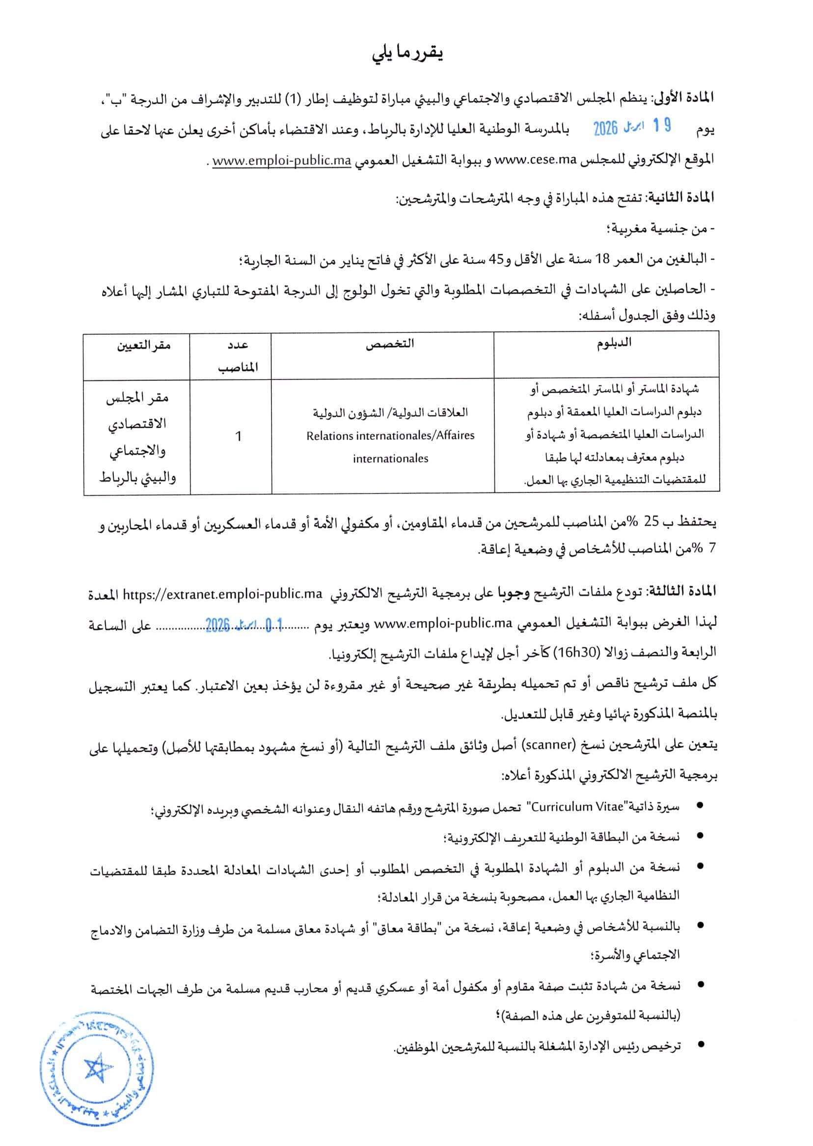 Maroc آخر أجل: 07/04/2026 08/03/2026