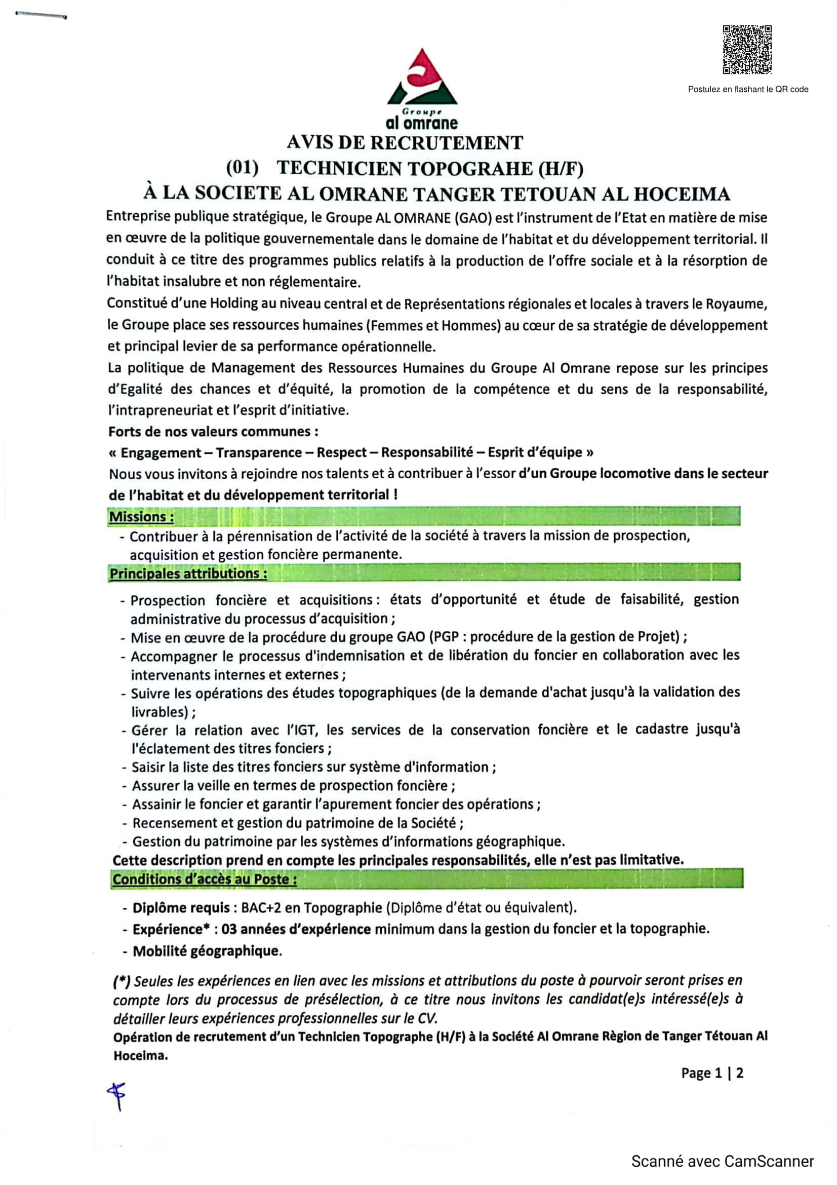 Concours Recrutement Groupe Al Omrane 2026 (3 Postes)