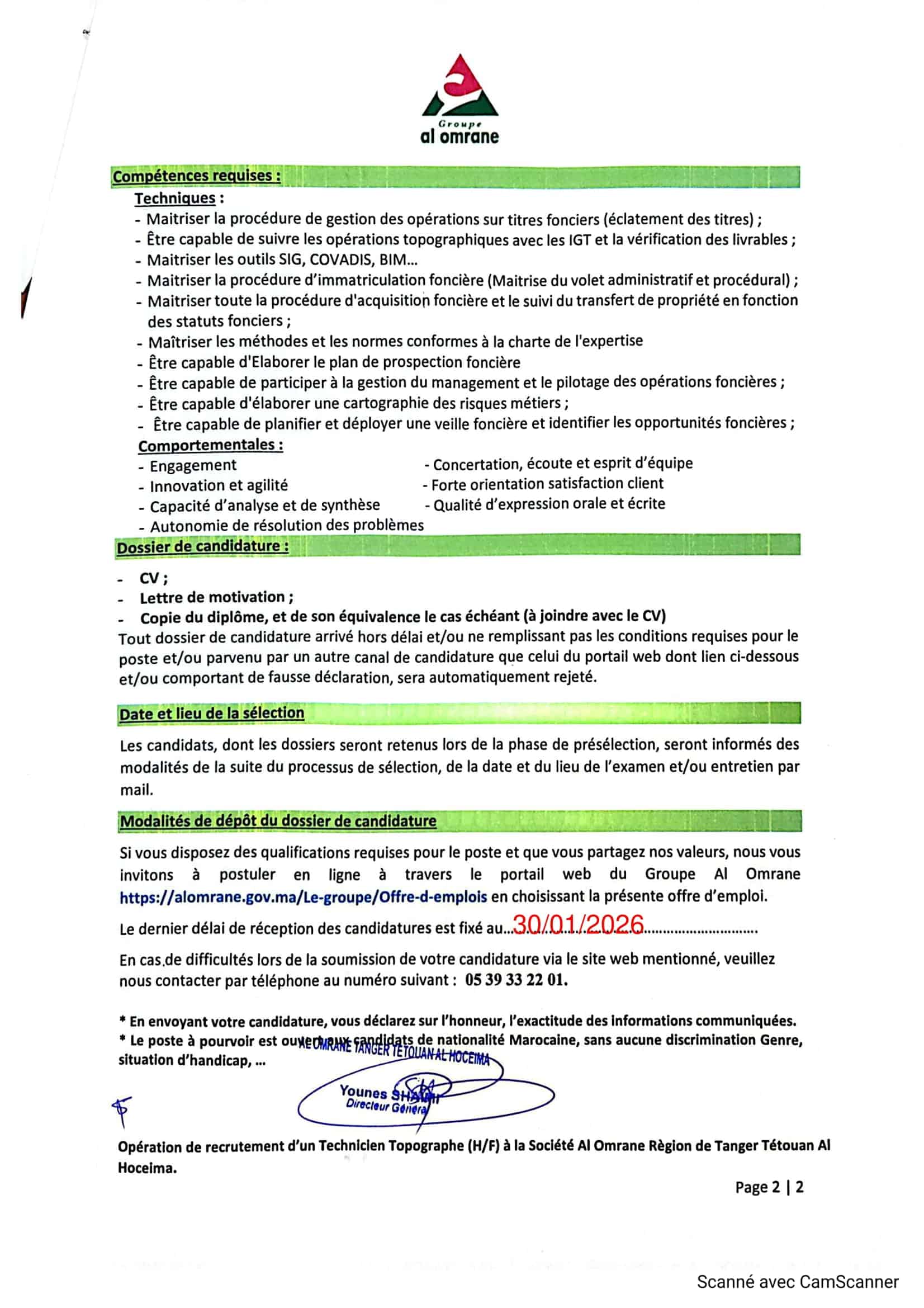Le Groupe Al Omrane, acteur public stratégique, organise un concours pour le recrutement de 3 postes : (02) Agents Commerciaux et (01) Technicien Topographe. La date limite de dépôt des candidatures est fixée au 30 janvier 2026.