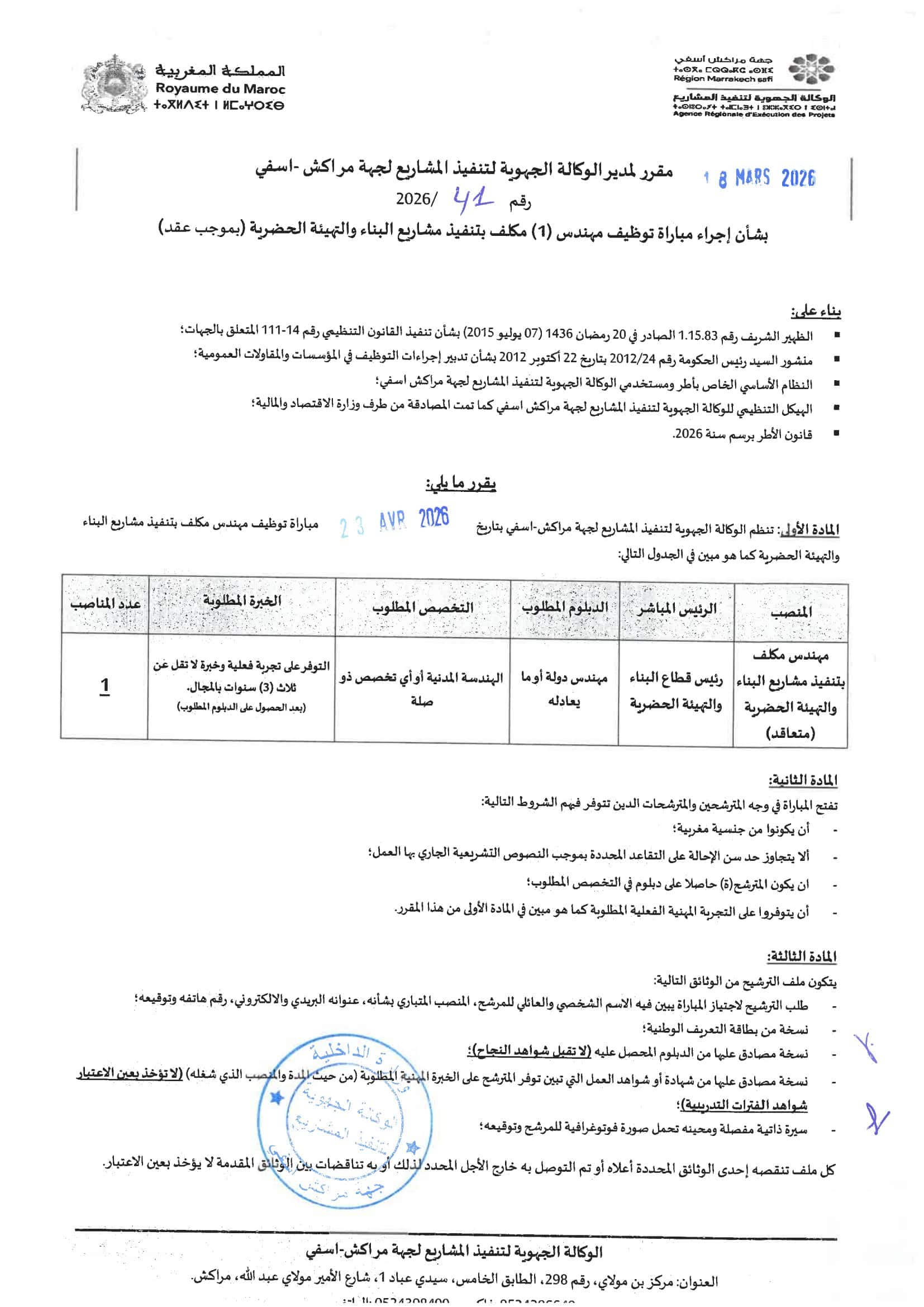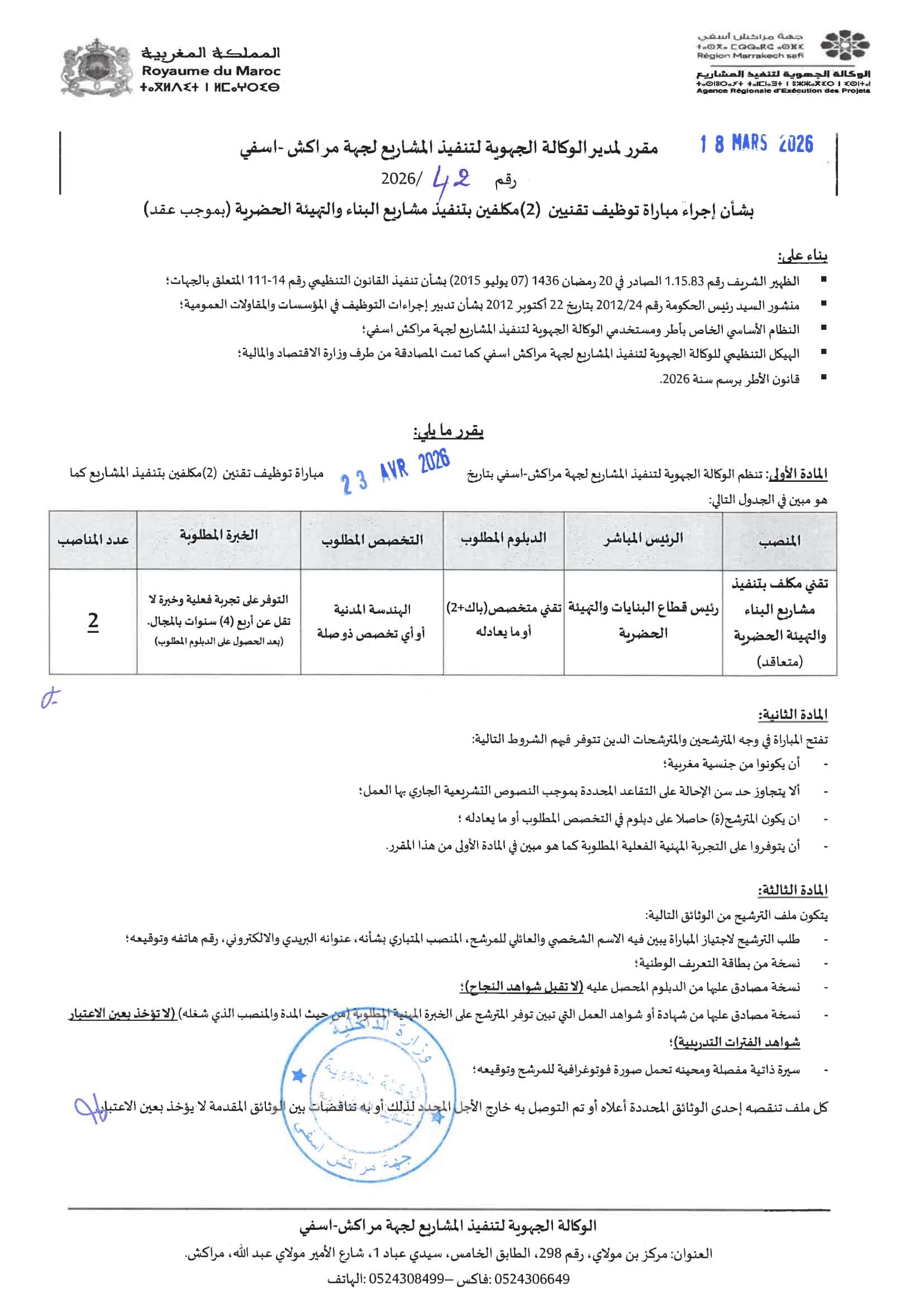 Concours de Recrutement AREP Marrakech Safi 2026 (4 Postes)