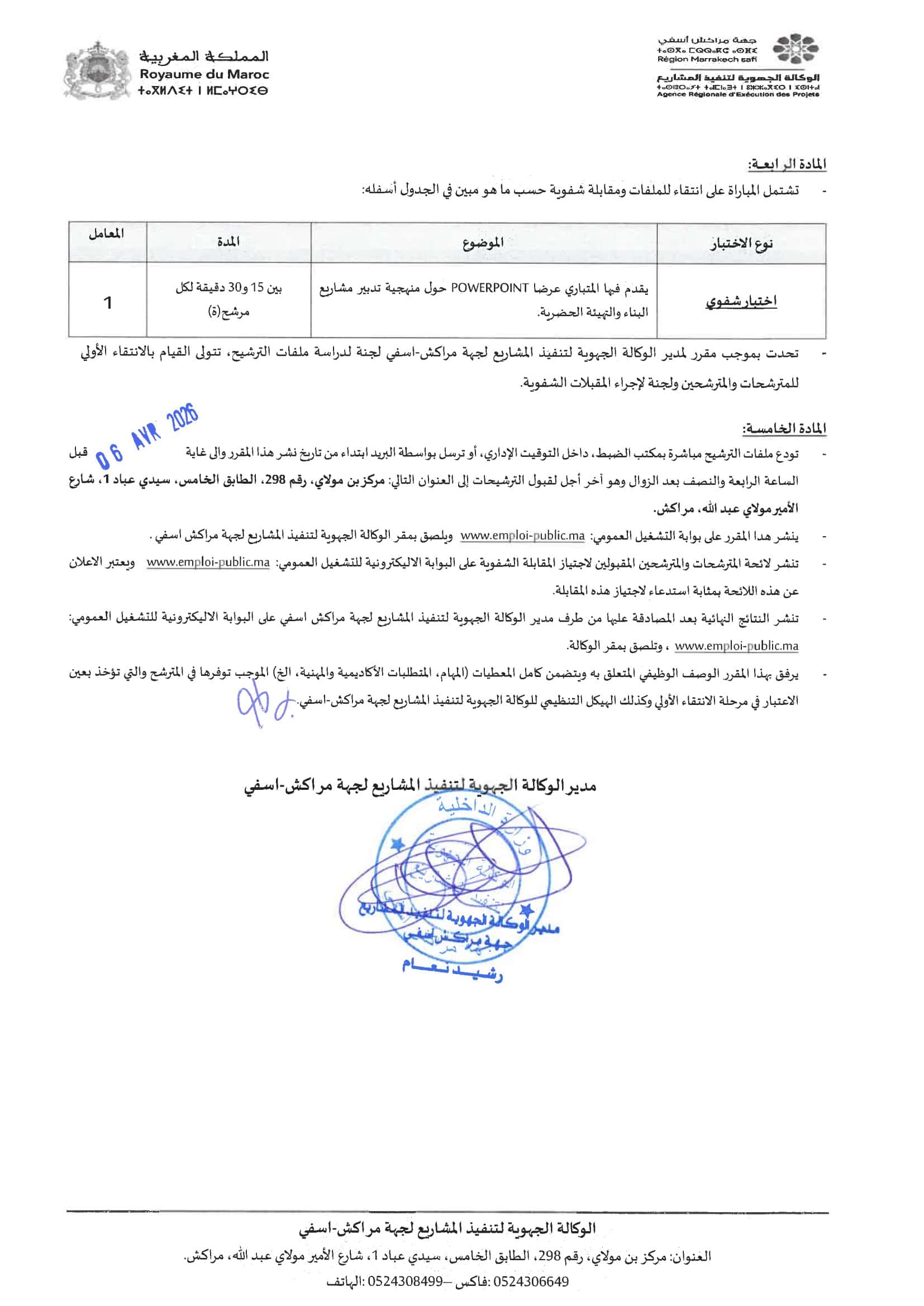 Mode de candidature: Soumission en ligne via le site officiel de l'AREP Marrakech Safi