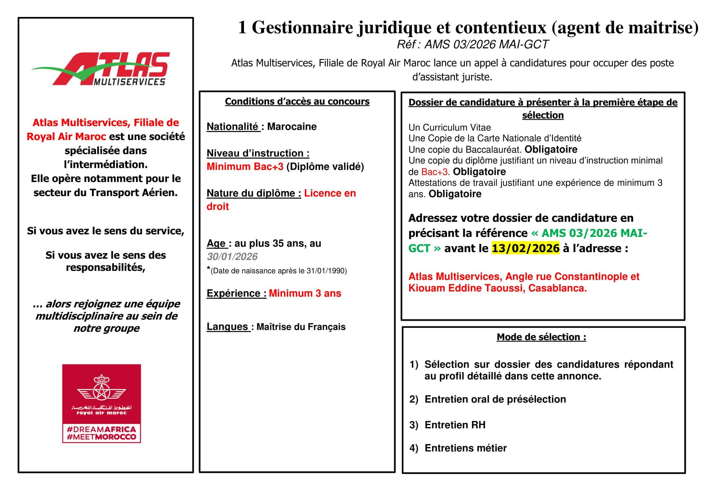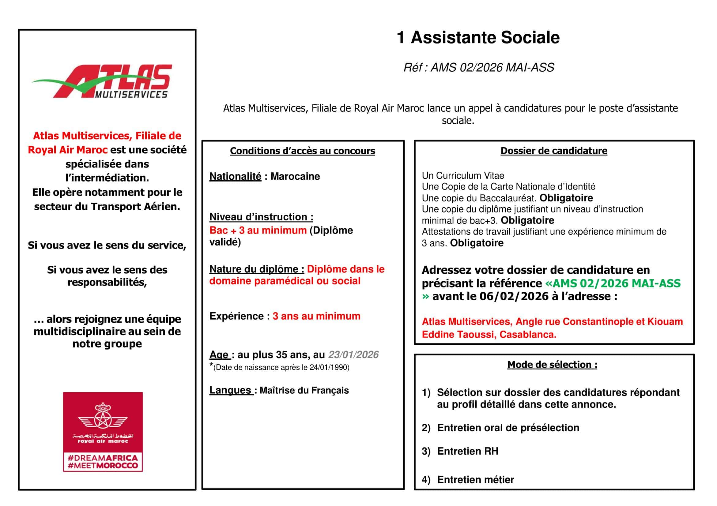 Concours de Recrutement Atlas Multiservices 2026 (3 Postes)