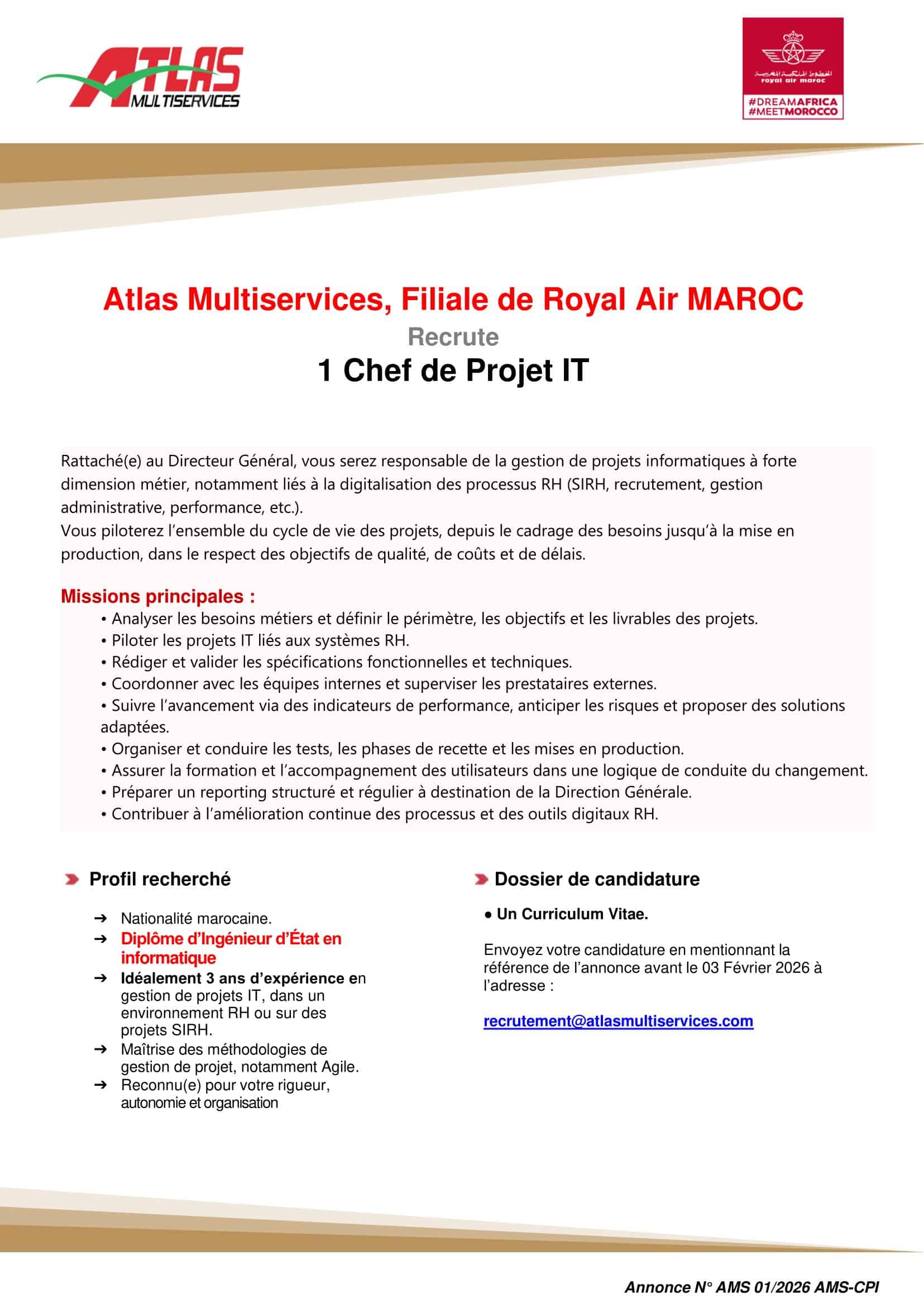 - 13 février 2026 pour le poste de Chef de Projet IT