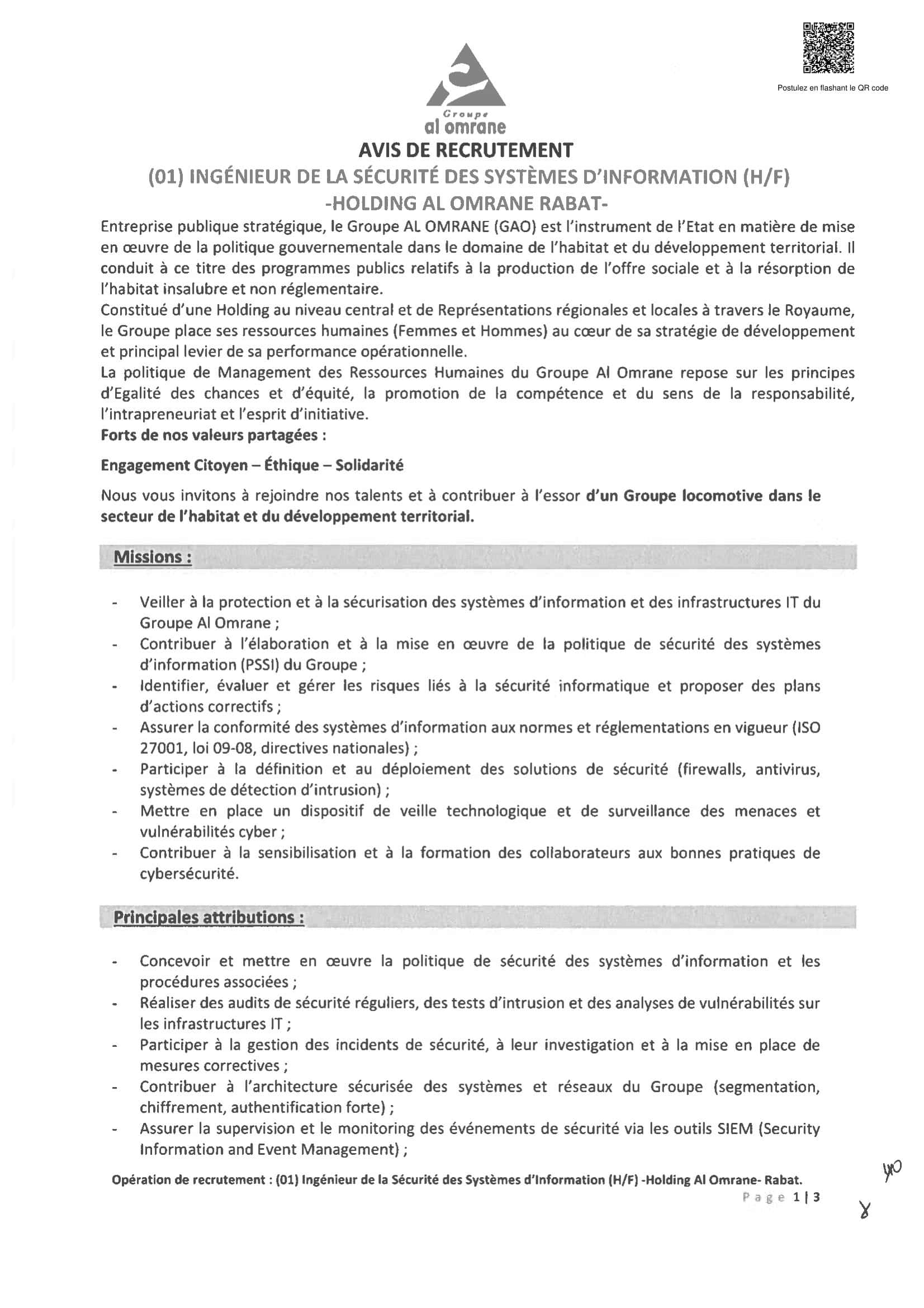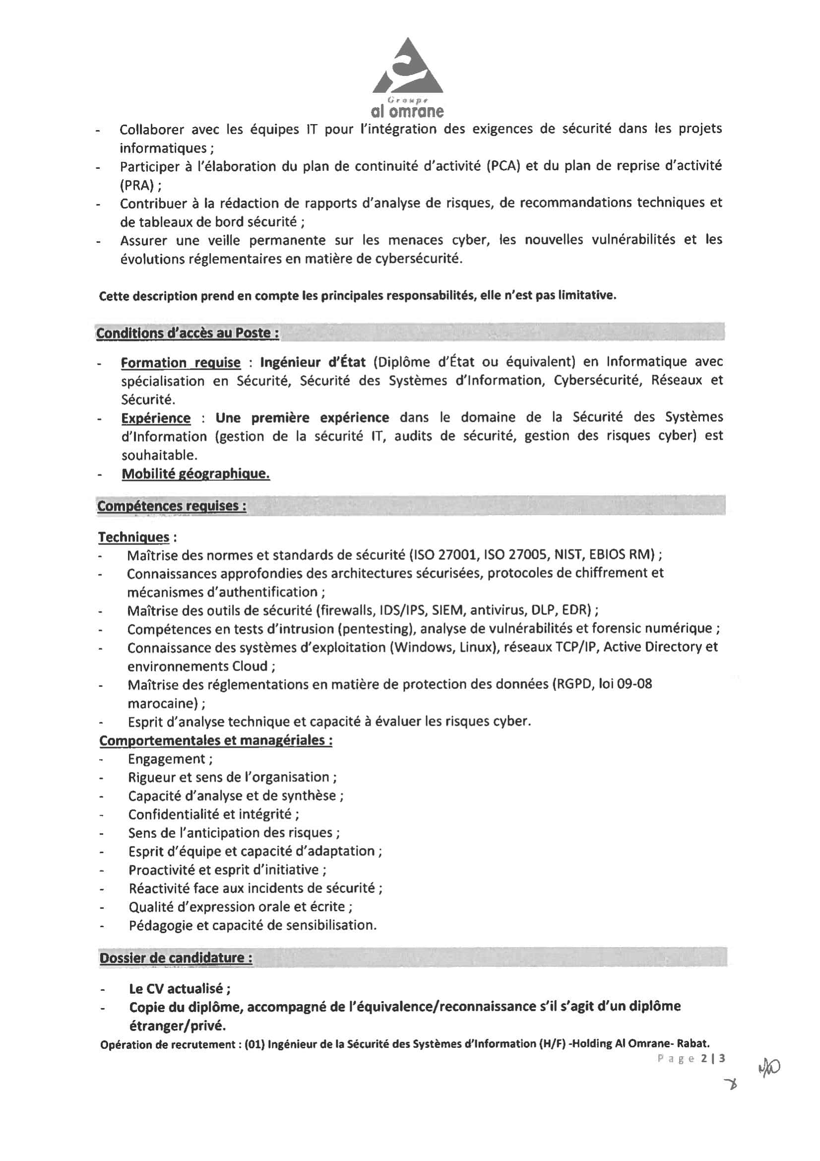 - (1) Ingénieur de la Sécurité des Systèmes d'Information