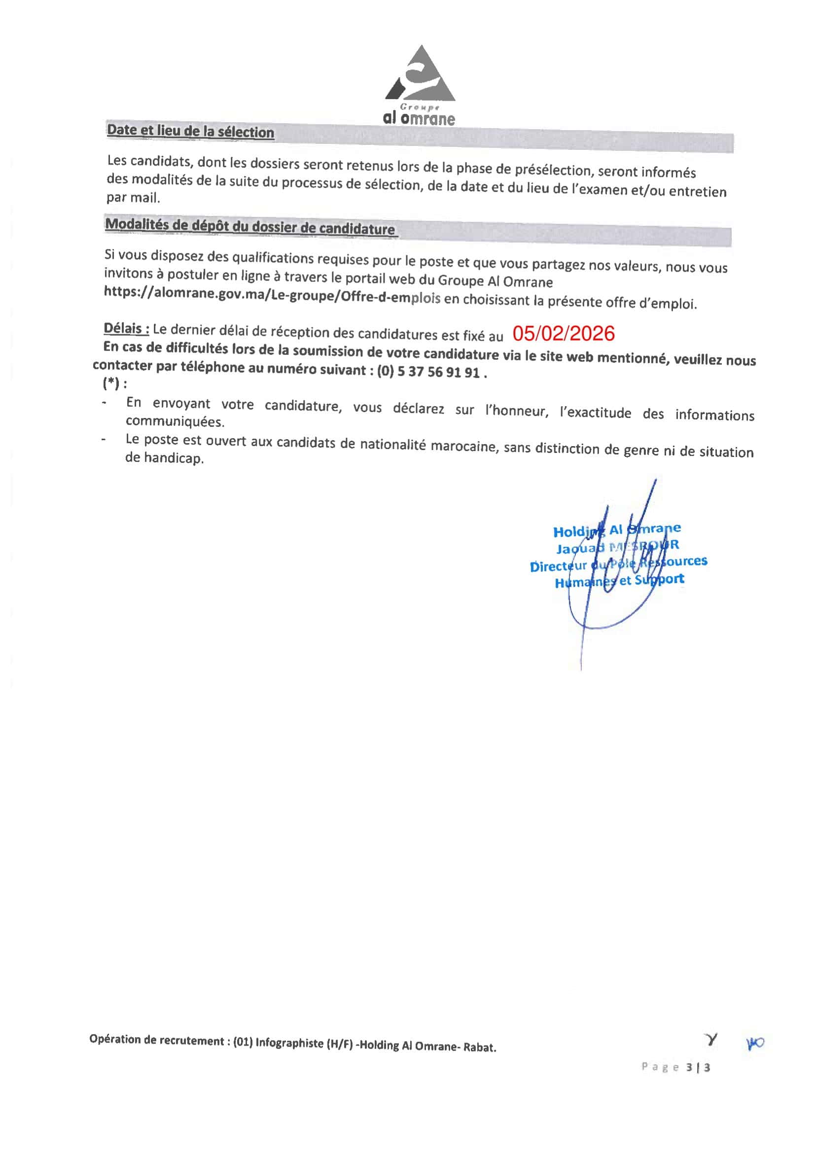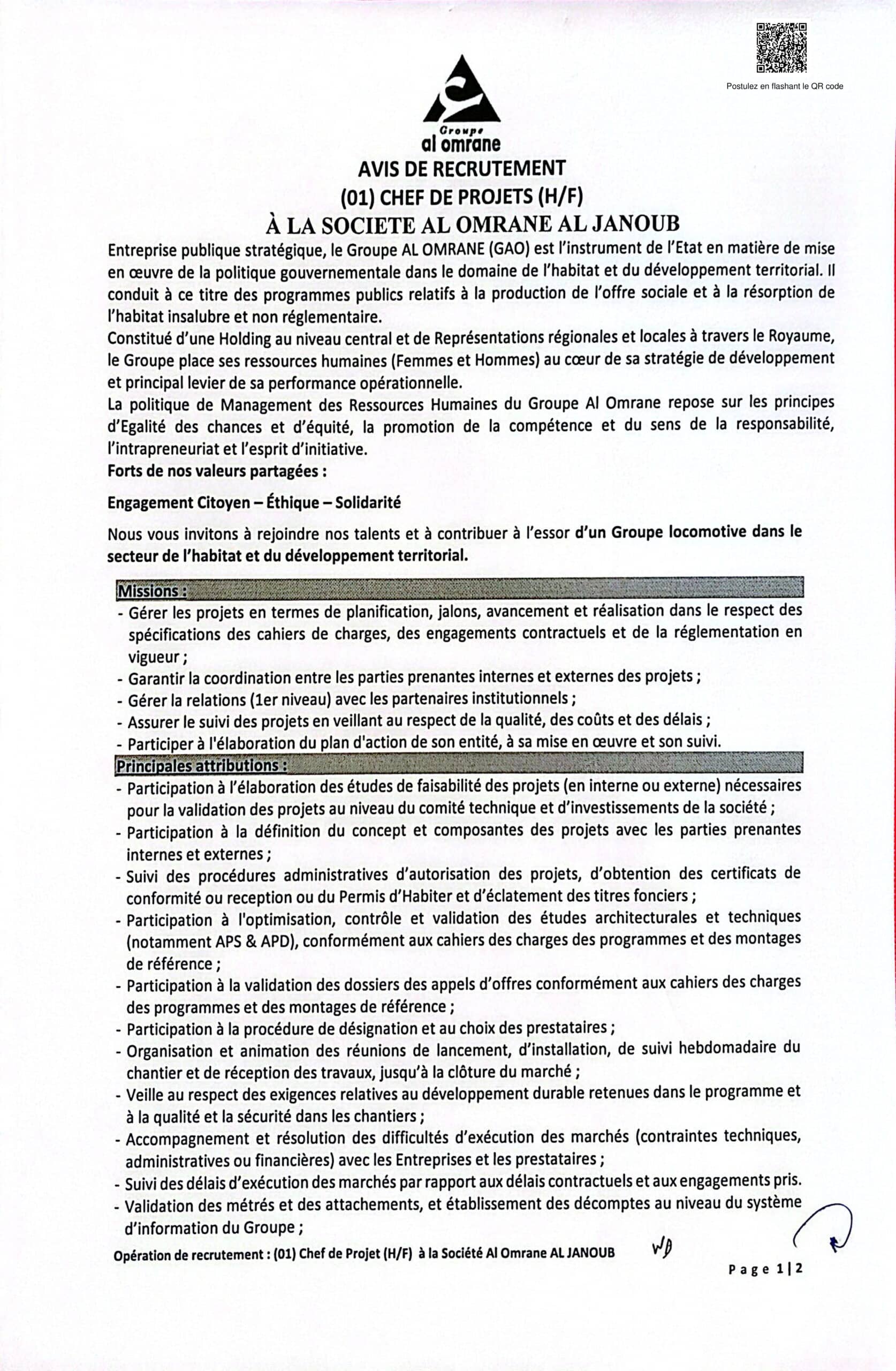 Pour postuler, veuillez accéder à la plateforme officielle du Groupe Al Omrane en cliquant sur le lien ci-dessous.