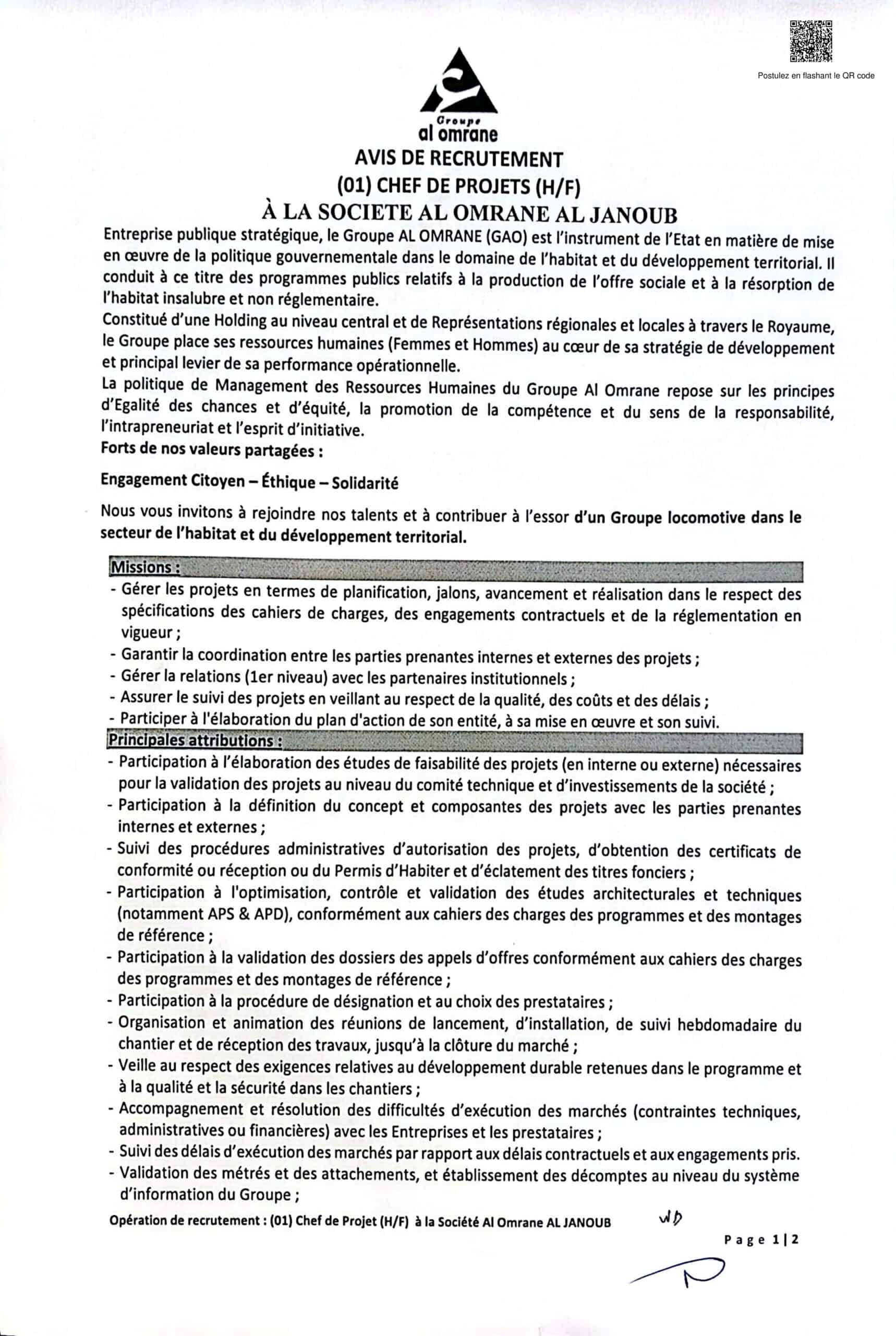 Concours de Recrutement Groupe Al Omrane 2026 (14 Postes)