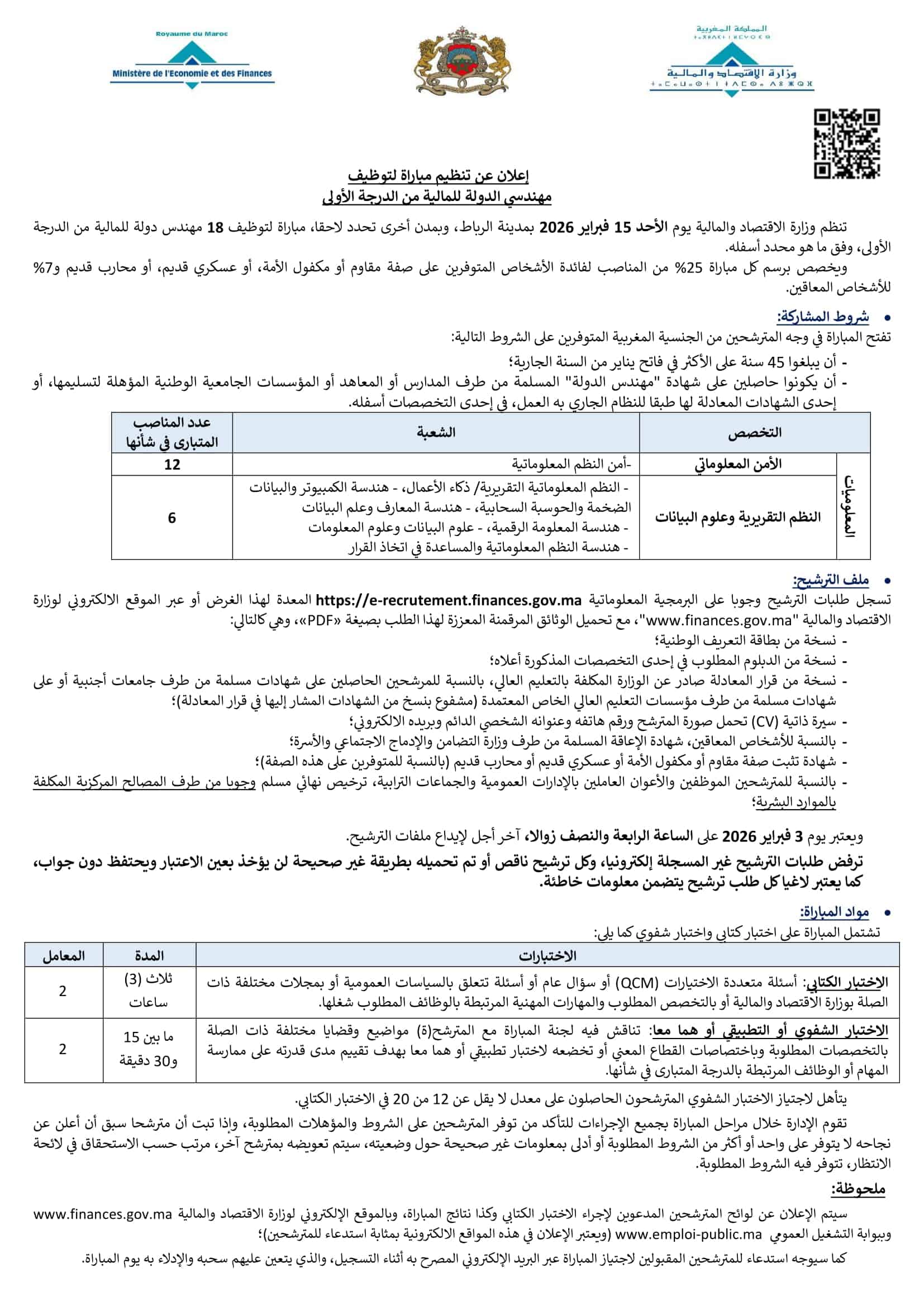 Mode de candidature: Postulez en ligne via e-recrutement.finances.gov.ma